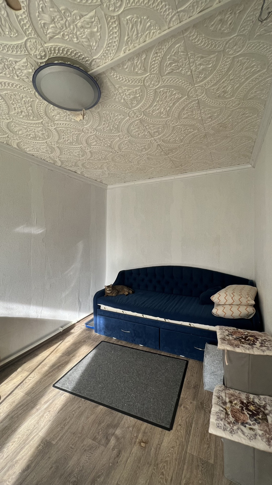 В доме выполнен косметический ремонт, в сан.узле установлена душевая кабина, 4 комнаты для проживания и кухня с кирпичной печью. Обшит дом профлистом, утеплены стены, потолок и пол. На кухне сделан теплый пол с настройкой температуры. В доме/ на кухне имеется сухой погреб из кисона. Соседи семейные, в шаговой доступности магазины и остановка. Имеются насаждения культурных растений - Яблоня, ирга, смородина, сирень.