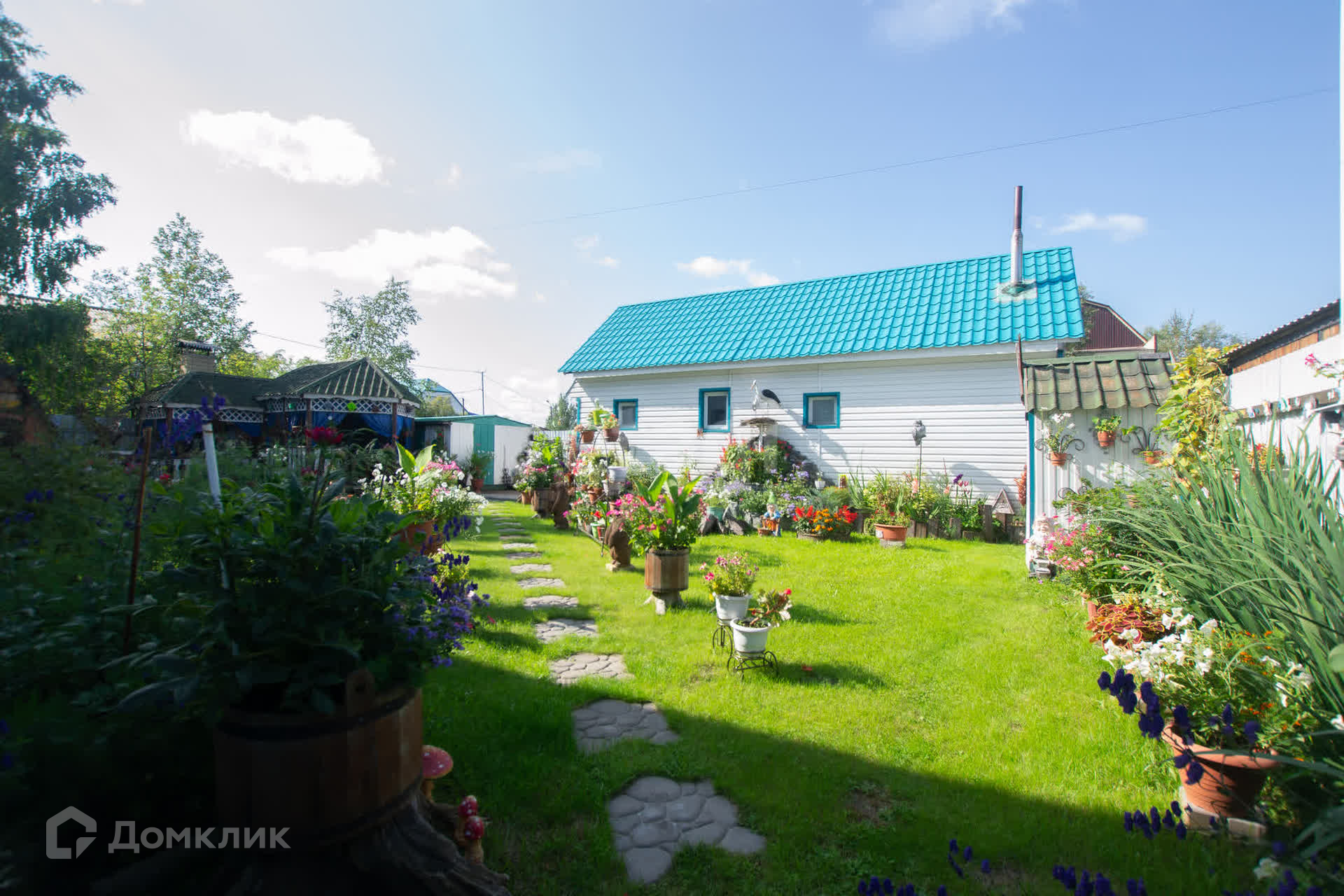 На участке расположена беседка , отдельно стоящая баня . Искусственный пруд.