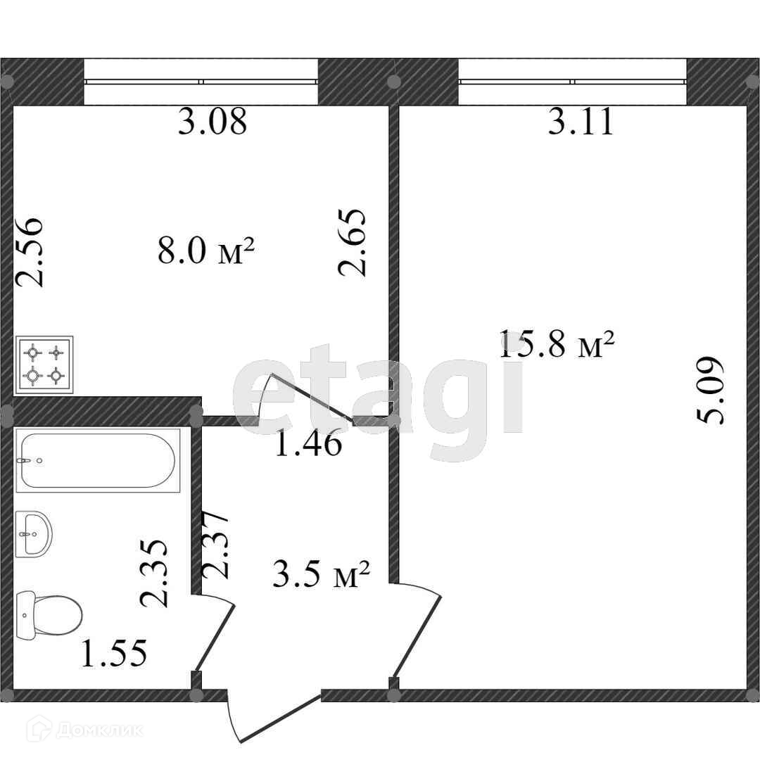Общая площадь 30.8 м2