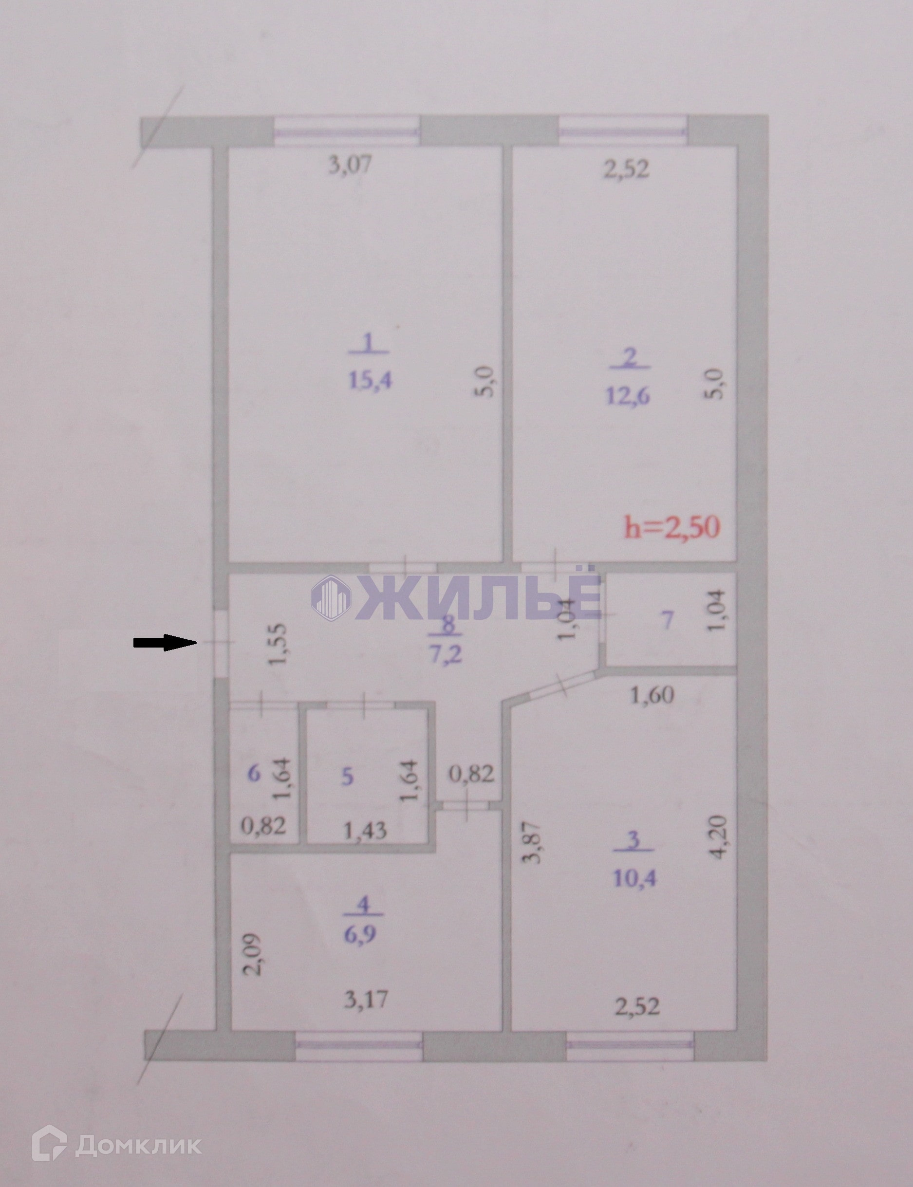 Общая площадь 57 м2