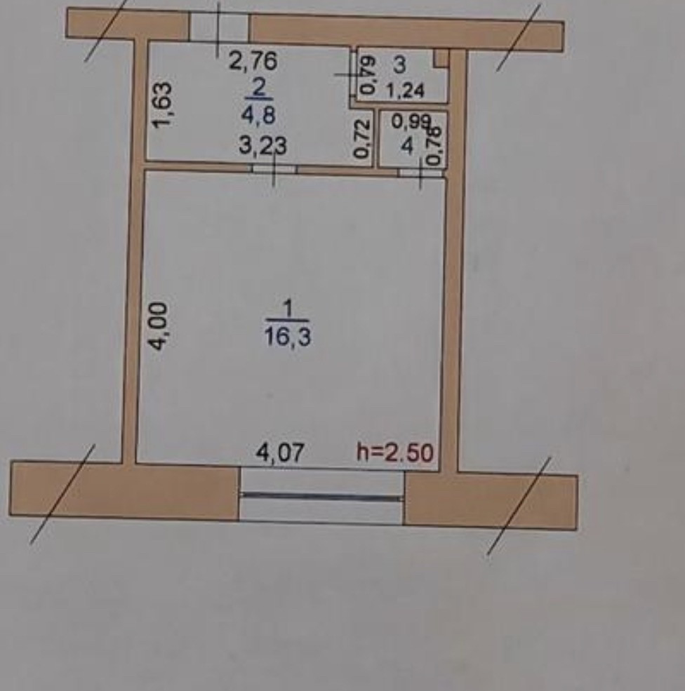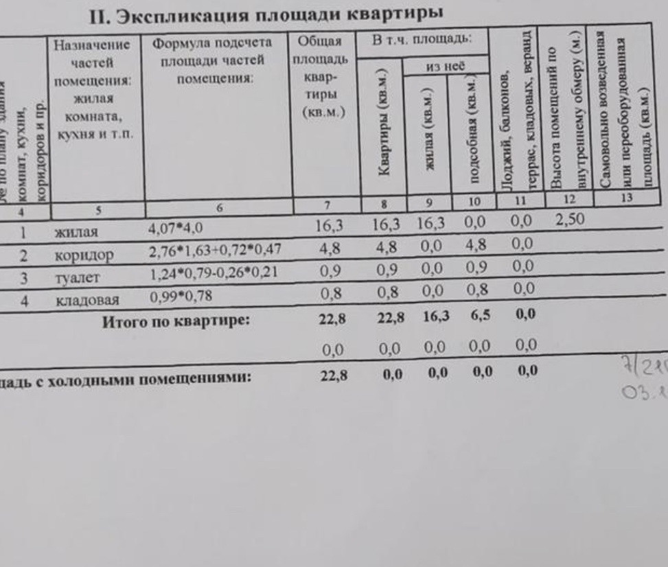 Общая площадь 22.8 м2