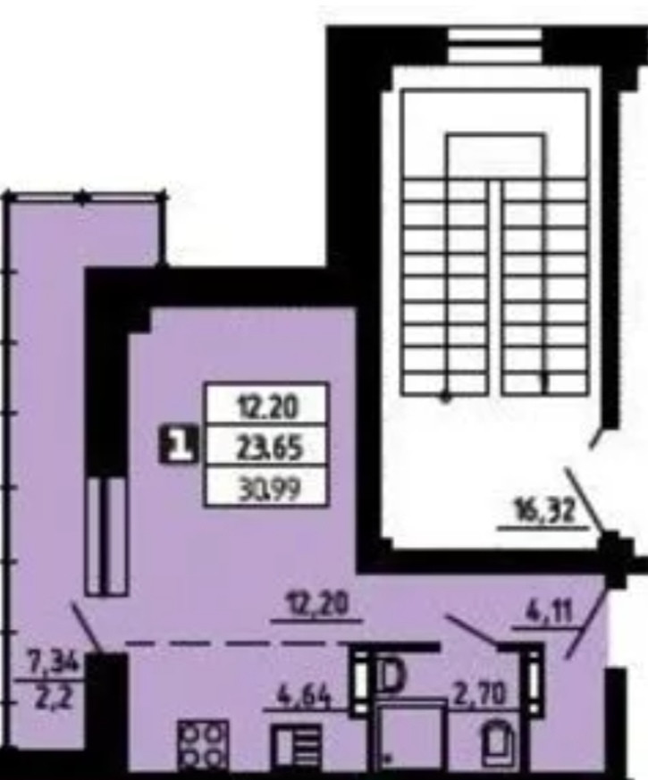 Общая площадь 30.99 м2