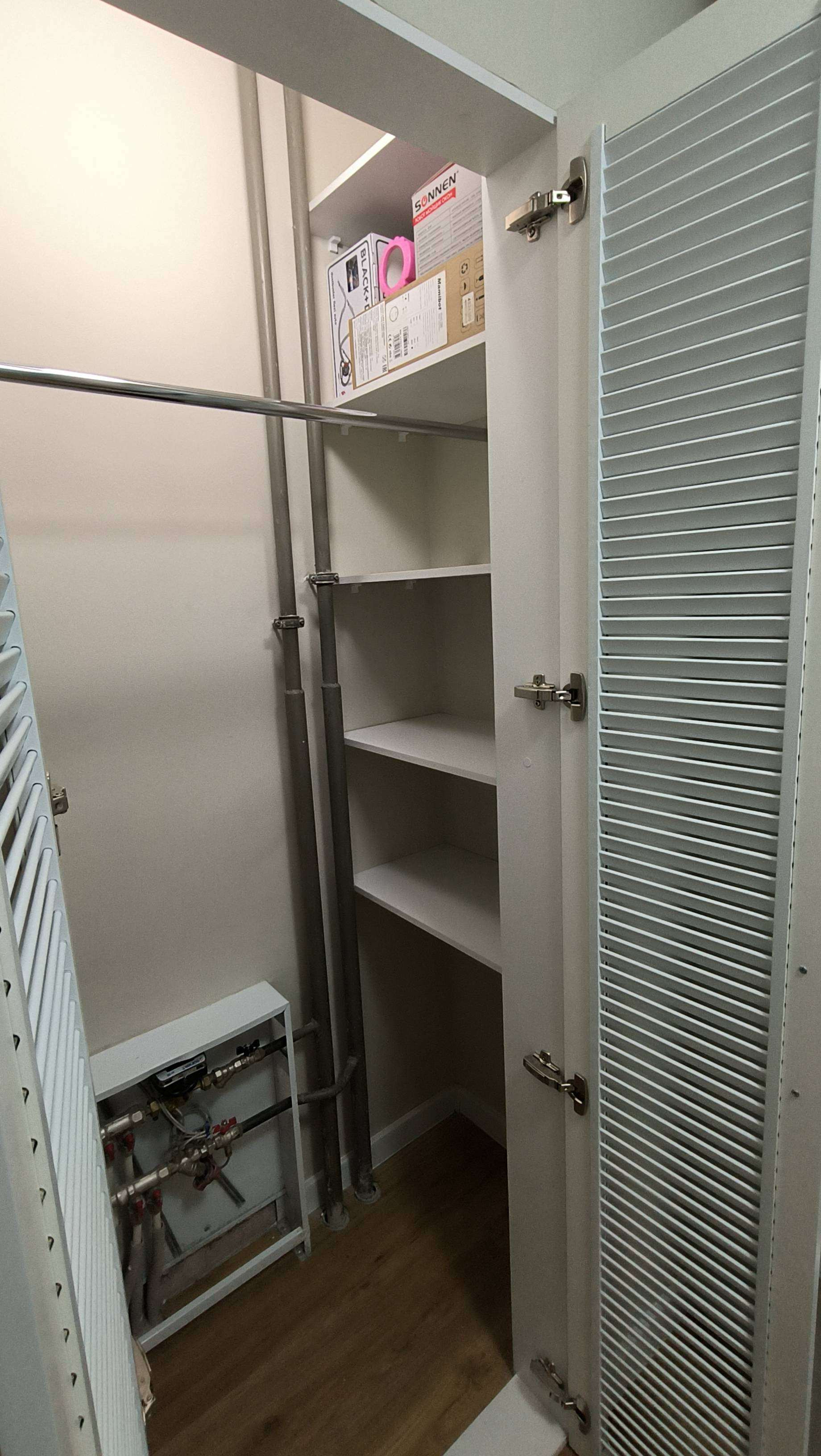 В квартире остаётся встроенная мебель (кухня, гардеробная в комнате и прихожей).