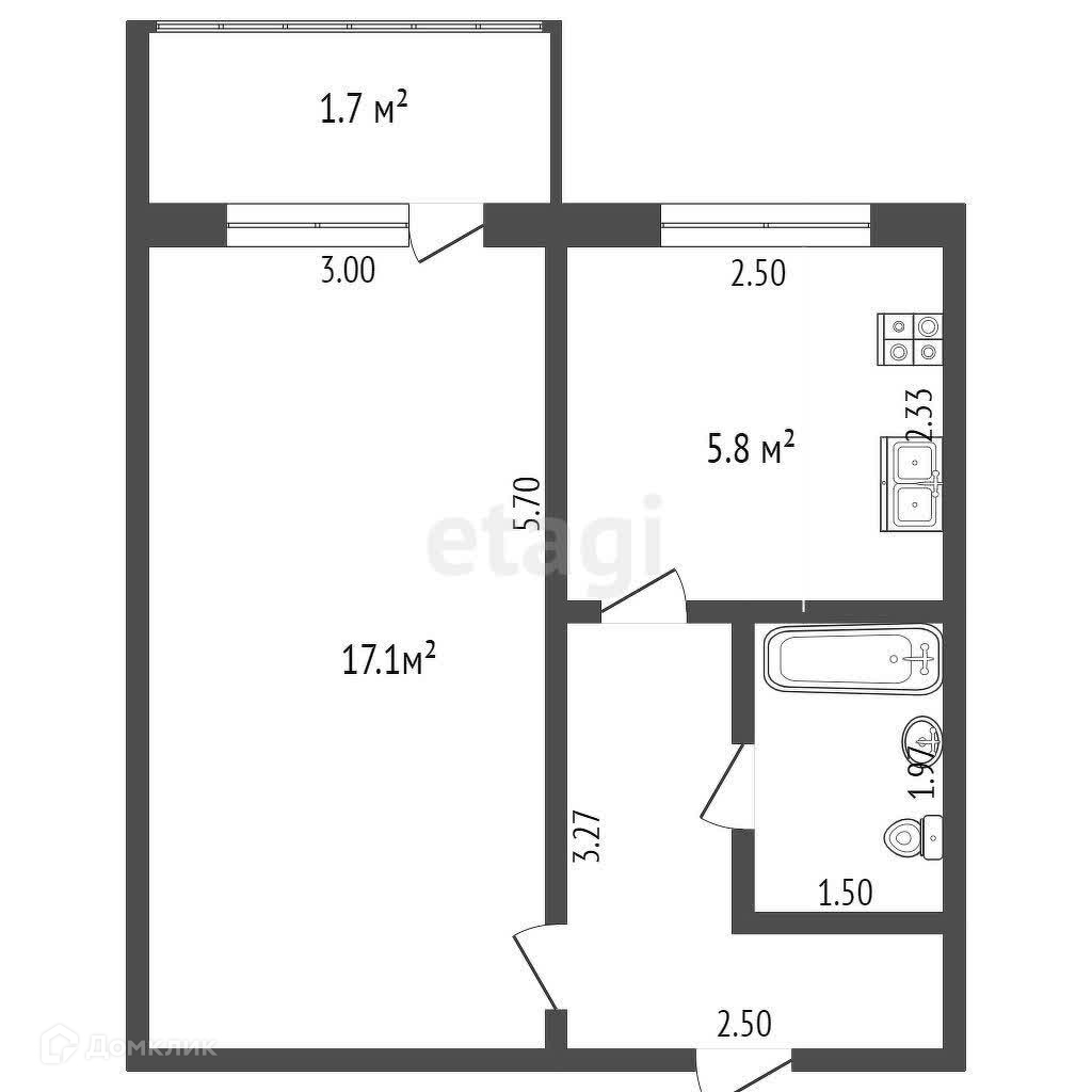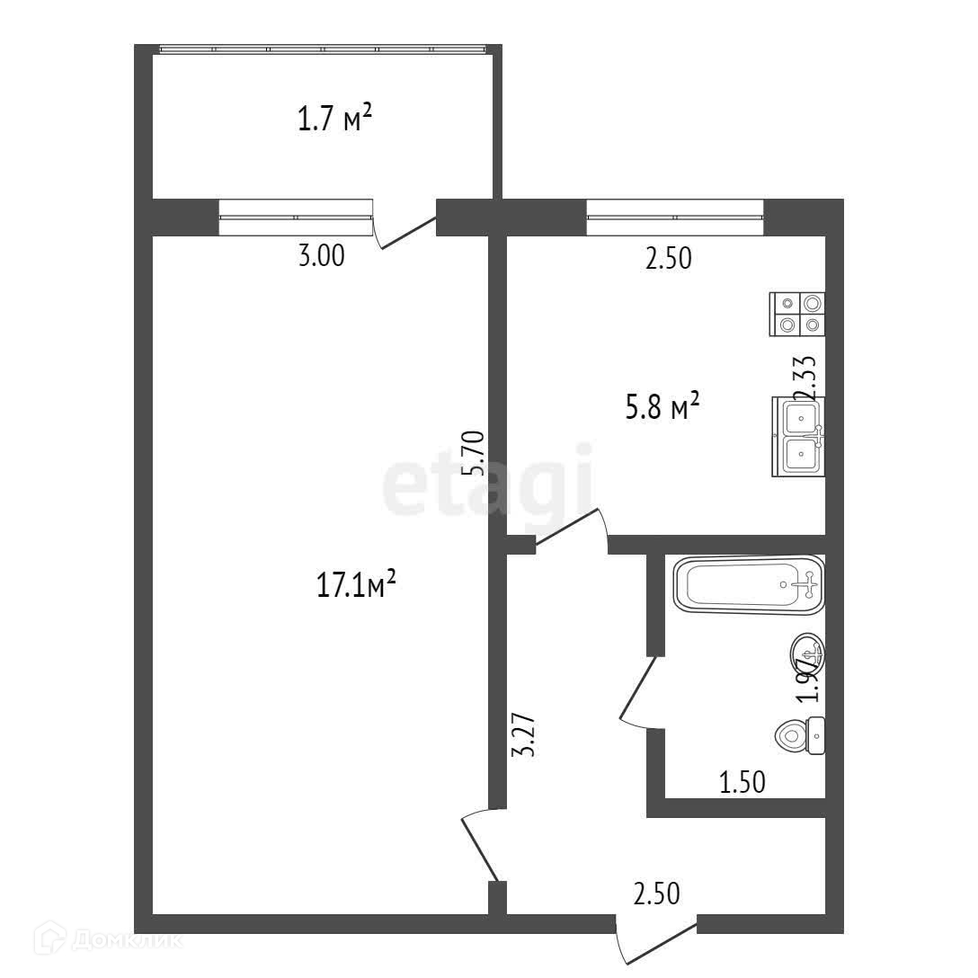 Общая площадь 30.7 м2