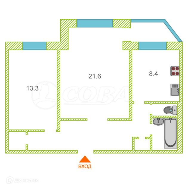 Общая площадь 60.3 м2