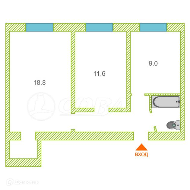 Общая площадь 49.7 м2