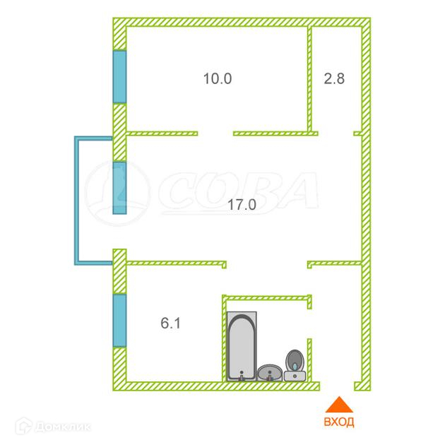 Общая площадь 44.3 м2