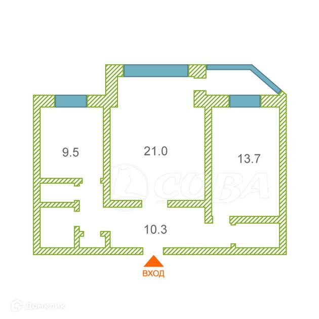 Общая площадь 60.4 м2