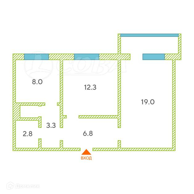 Общая площадь 53.2 м2