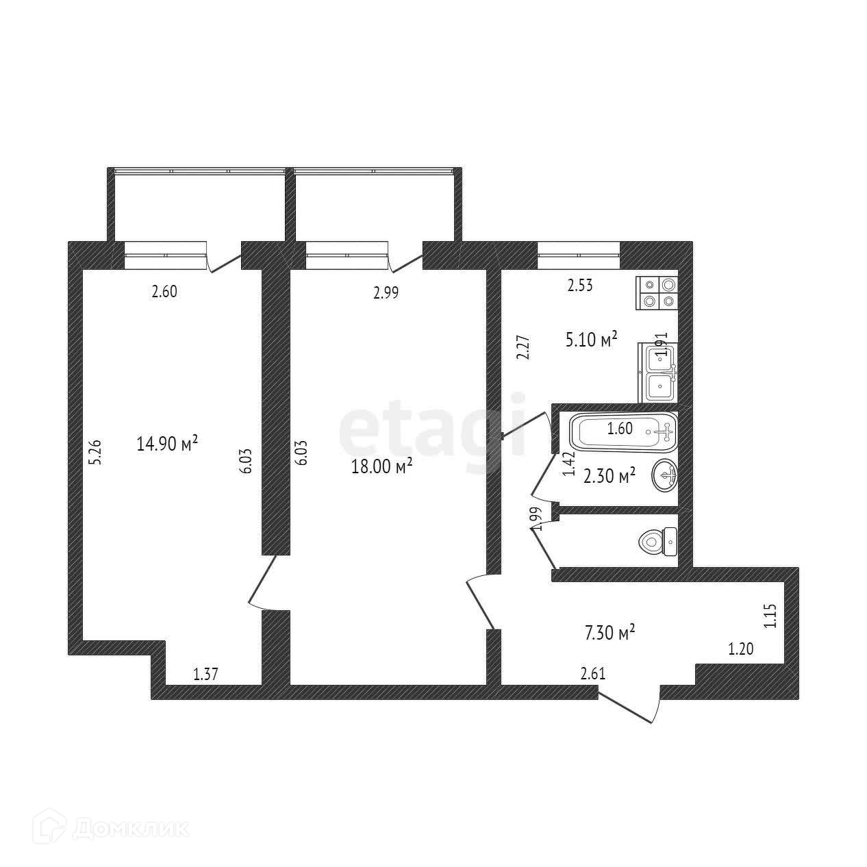 Общая площадь 48.9 м2