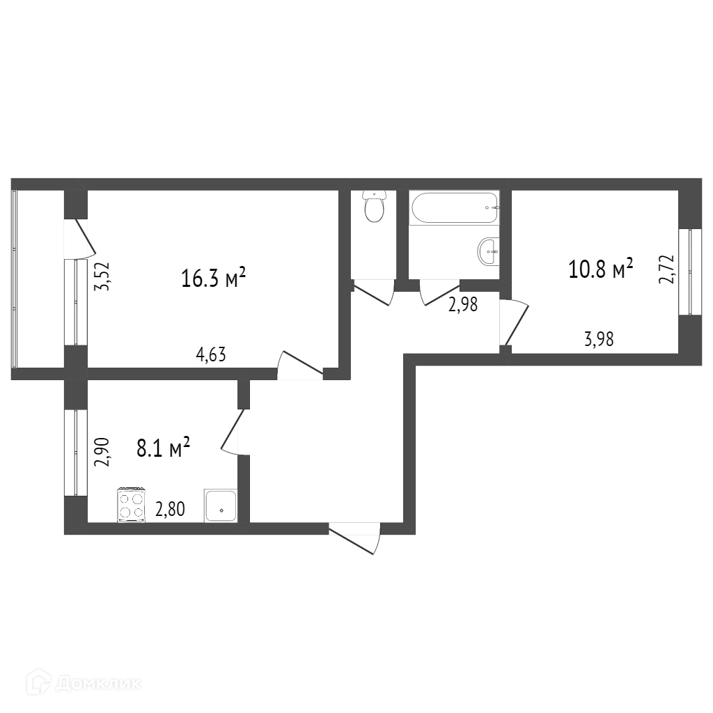 Общая площадь 52.7 м2
