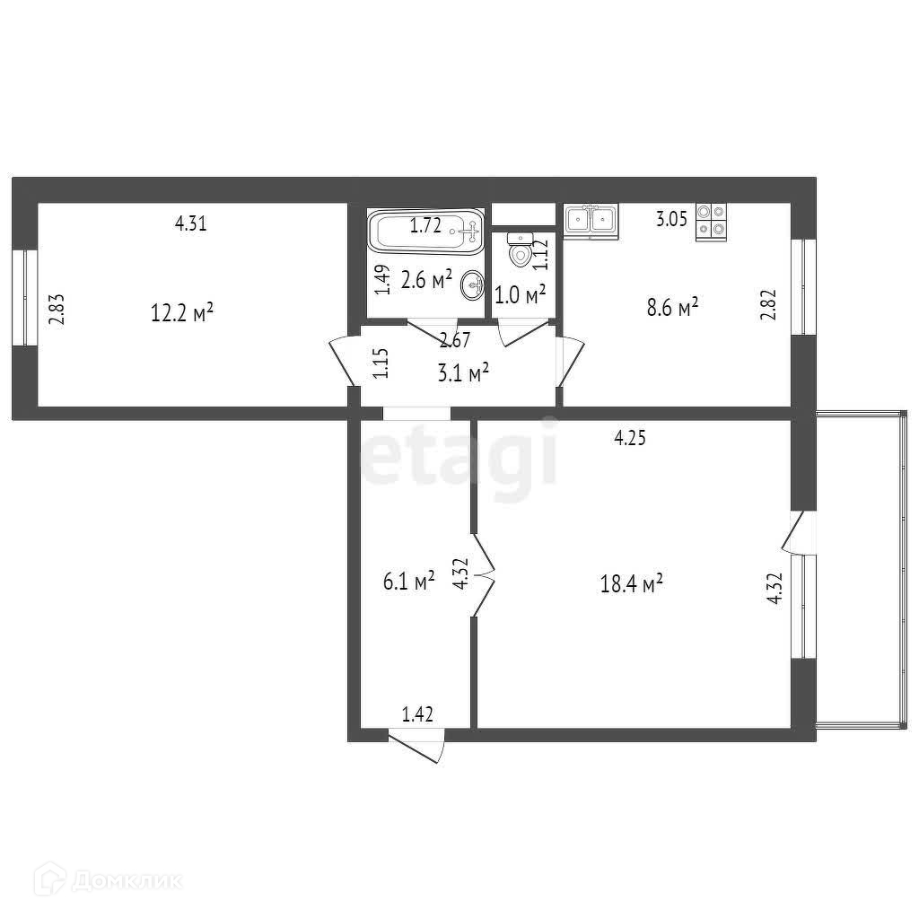 Общая площадь 52 м2