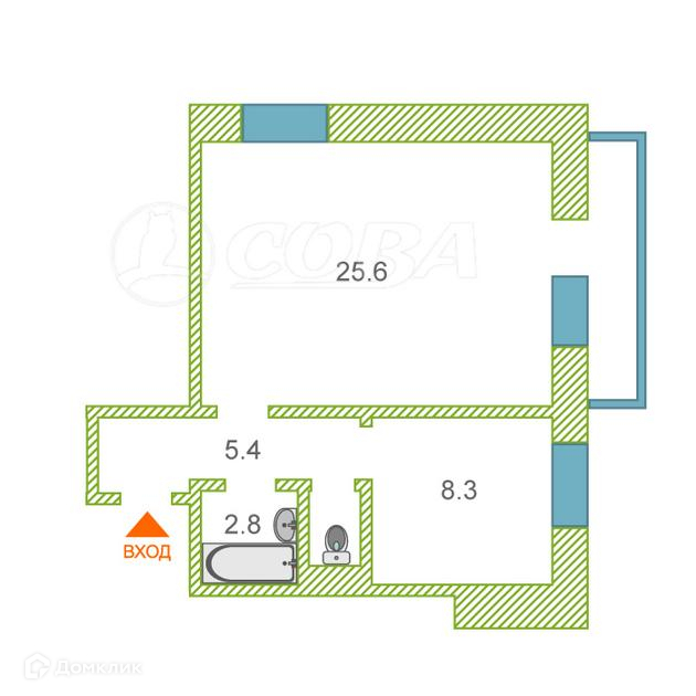 Общая площадь 43.3 м2