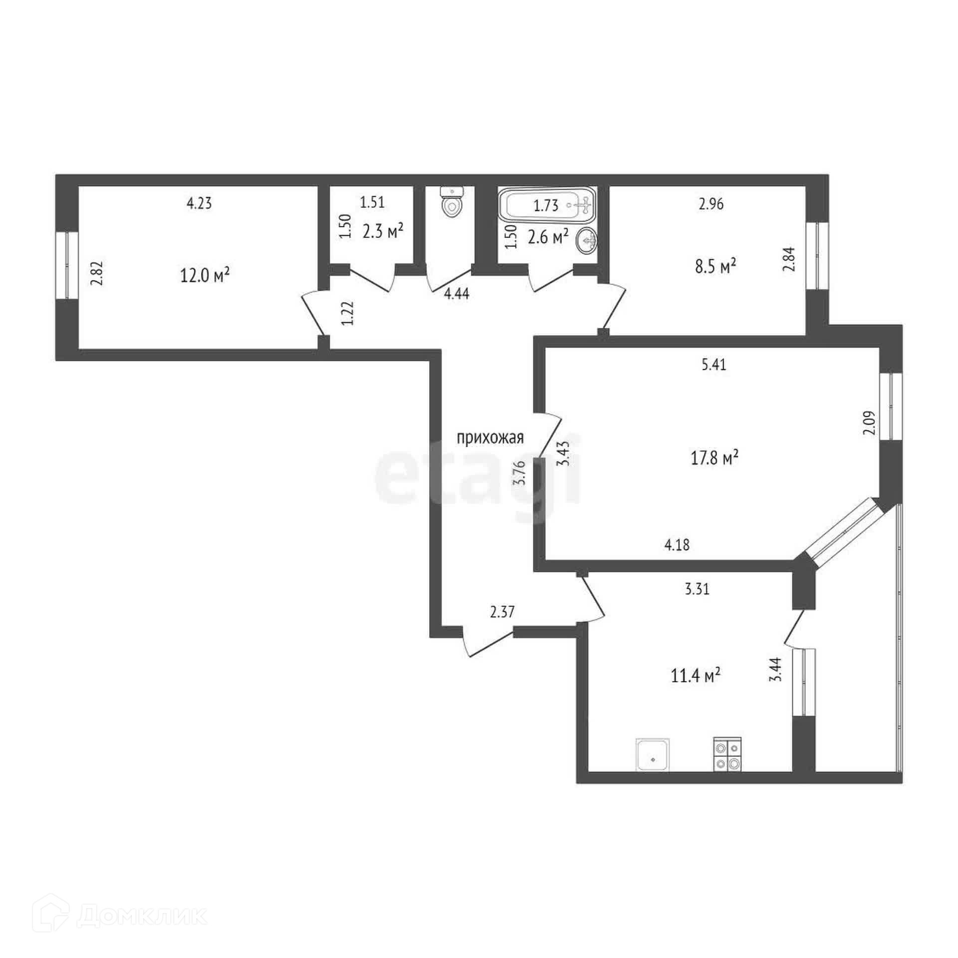 Из кухни выход на просторную лоджию.