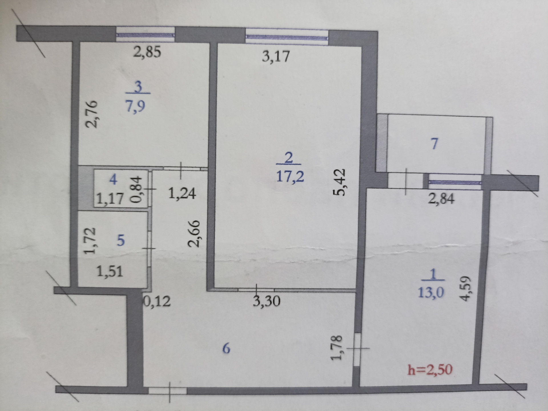 Высота потолков 2.5 м
