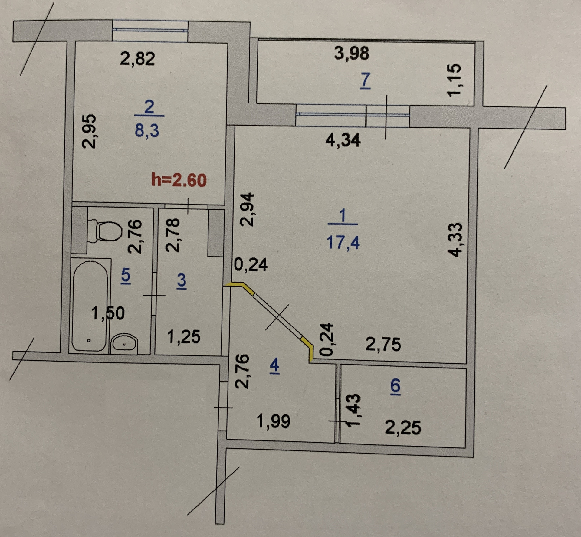 Высота потолков 2.5 м