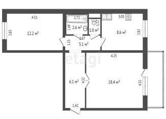 Общая площадь: 43.3 м2