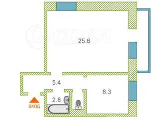 Общая площадь: 30.4 м2
