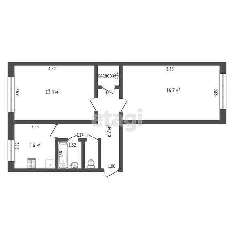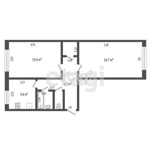 Общая площадь 43.5 м2