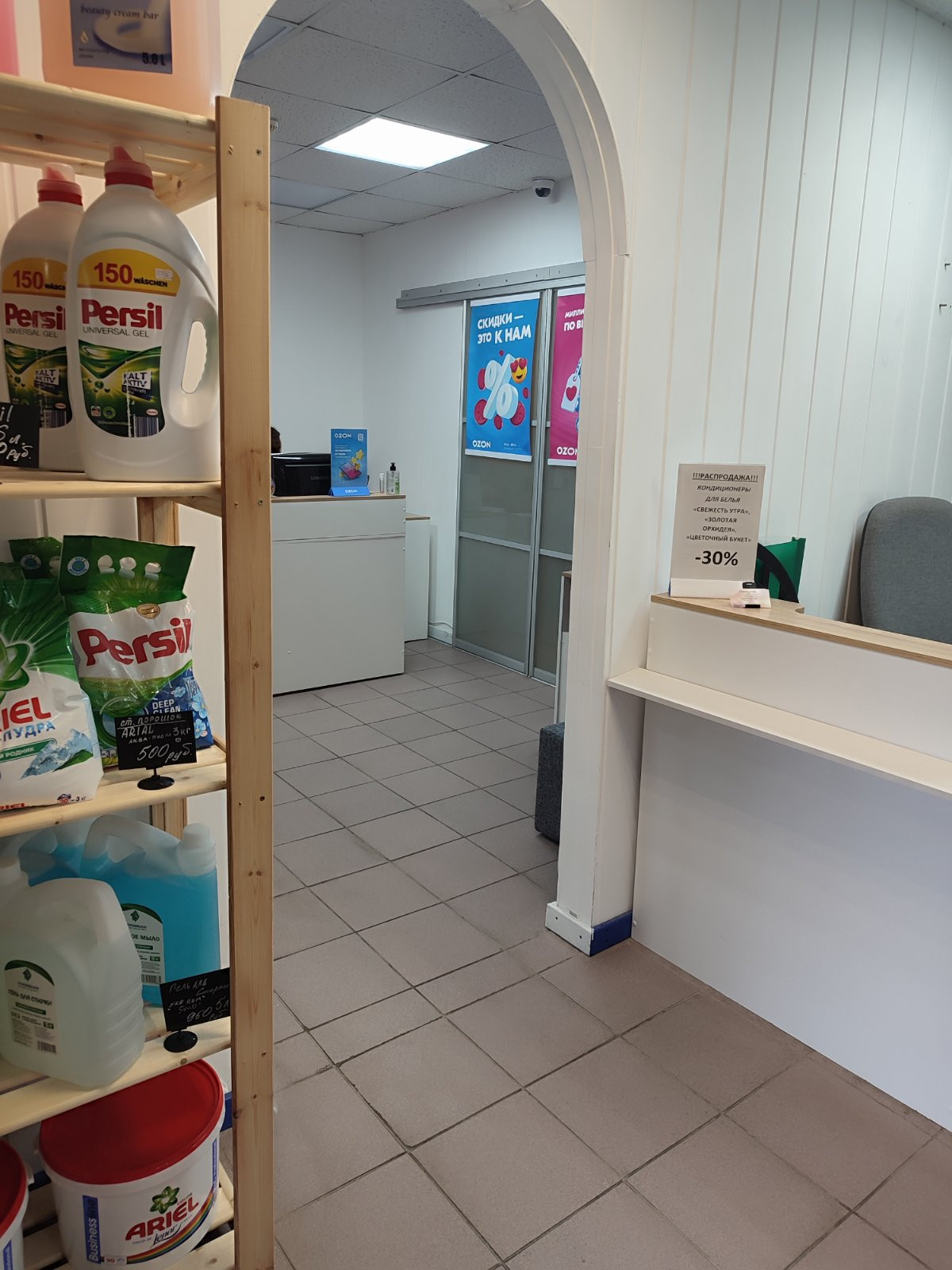 В настоящее время в помещении действует ПВЗ Озон, розничный магазин по продаже бытовой химии, офисное помещение, место приема пищи персонала.