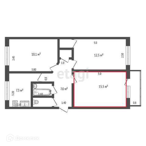 Общая площадь 15.5 м2