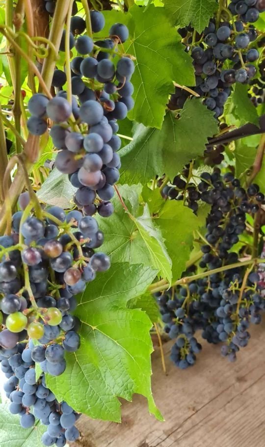 Кустарники смородина чёрная, красная, жёлтая, малина, крыжовник.