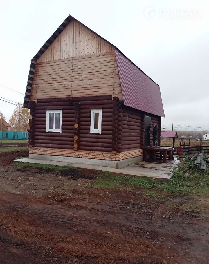 Продаётся дом с мансардные этажом.  Мансардные этаж не обустроен. Площадь первого этажа 40 кв. м. Имеется большой санузел, прихожая, кухня  и гостиная. Дом из оцилиндрованного бревна. По улице проходит газ. В доме имеется отопление электрическое, канализация, вода проведена. Участок 12 соток, забора нет. Возможен торг. Рассматриваю вариант обмена на двухкомнатную квартиру.