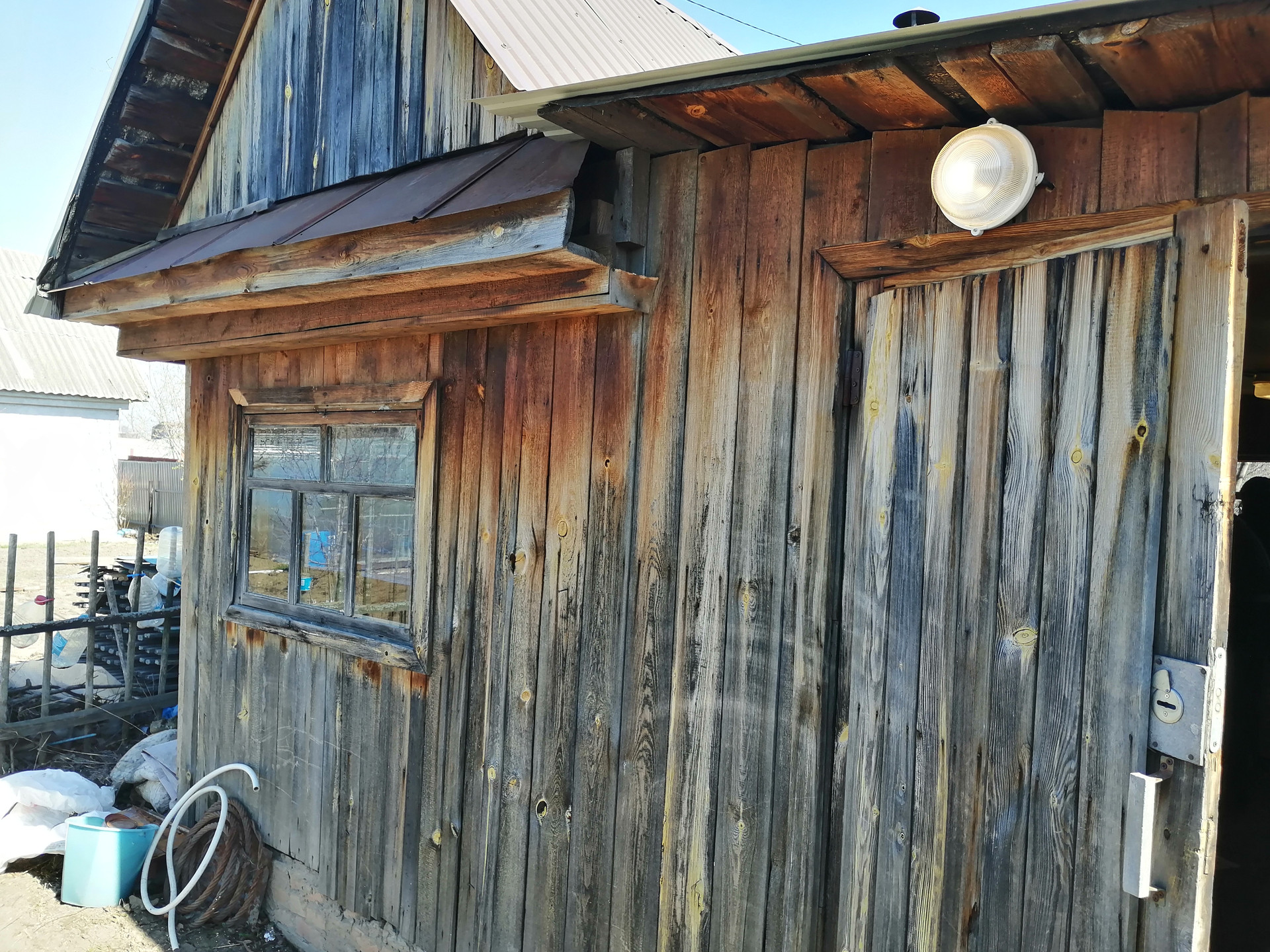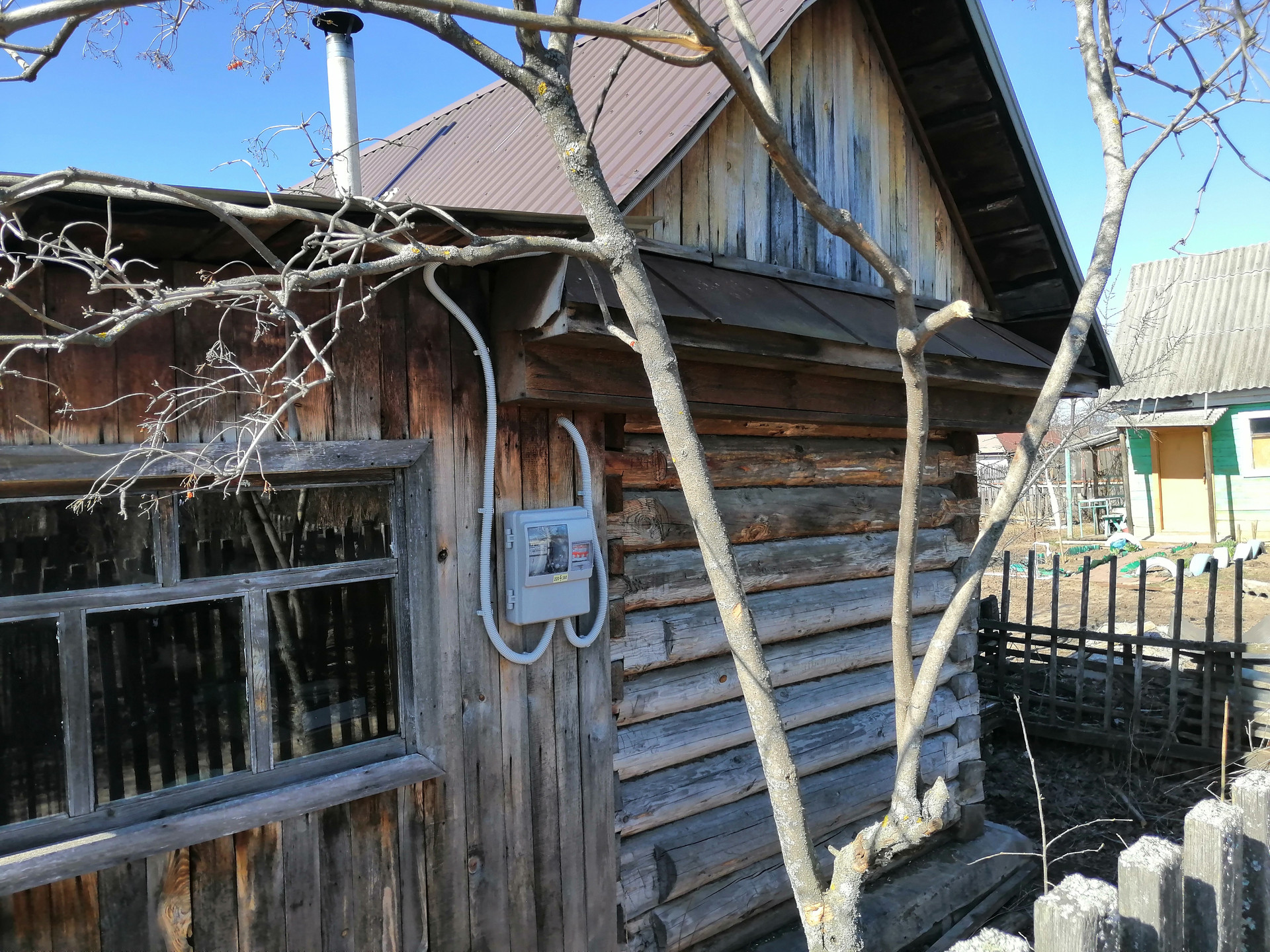 - Деревянный дом с бревенчатой баней.
