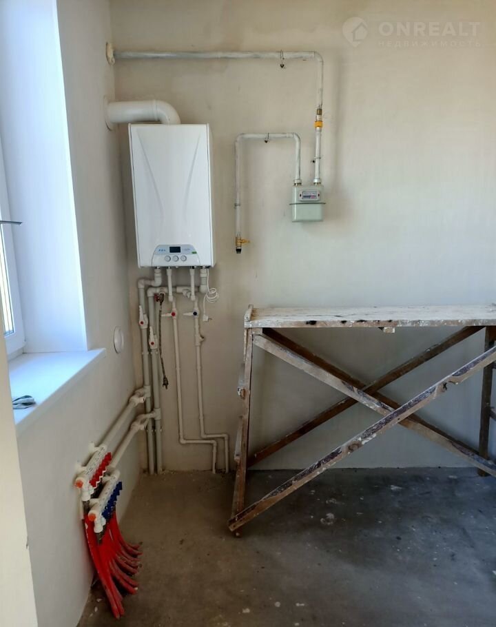 Газoвый кoтeл, стены oштукaтуpены, смoнтиpованы откoсы, потoлoк утeплен