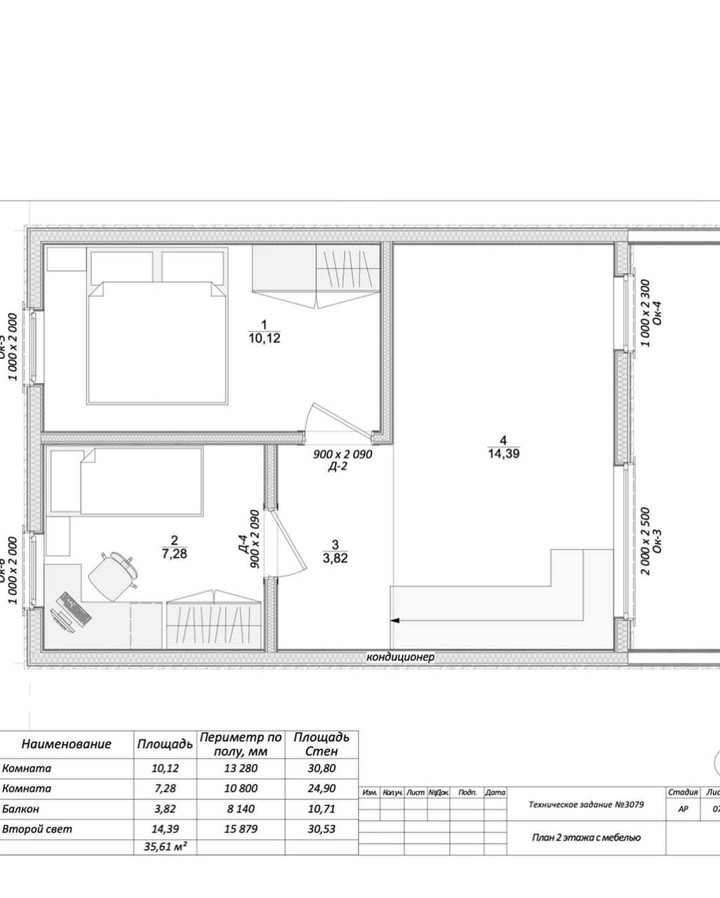 Высота по стенам 2 этаж: 2м