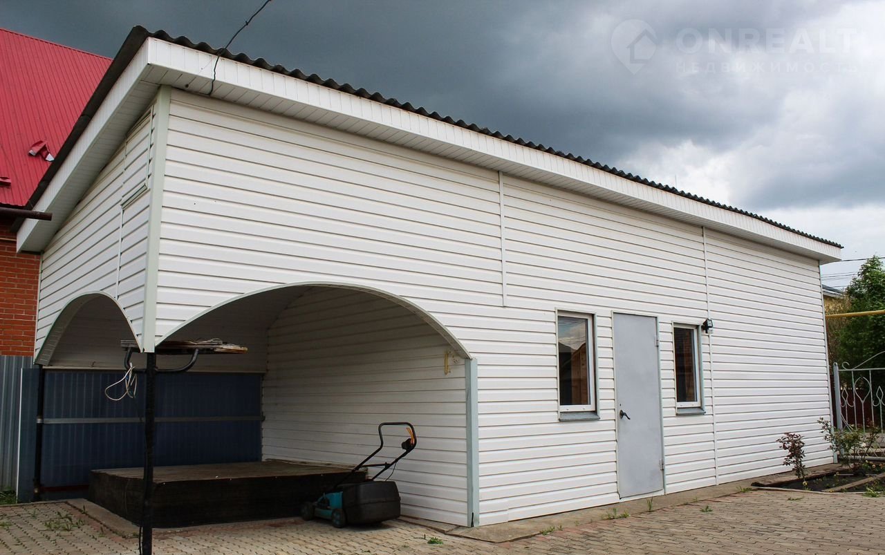 На участке имеется гараж и обшитое вагонкой помещение, смежное с гаражом, небольшая, но уютная беседка, баня и  сарай.