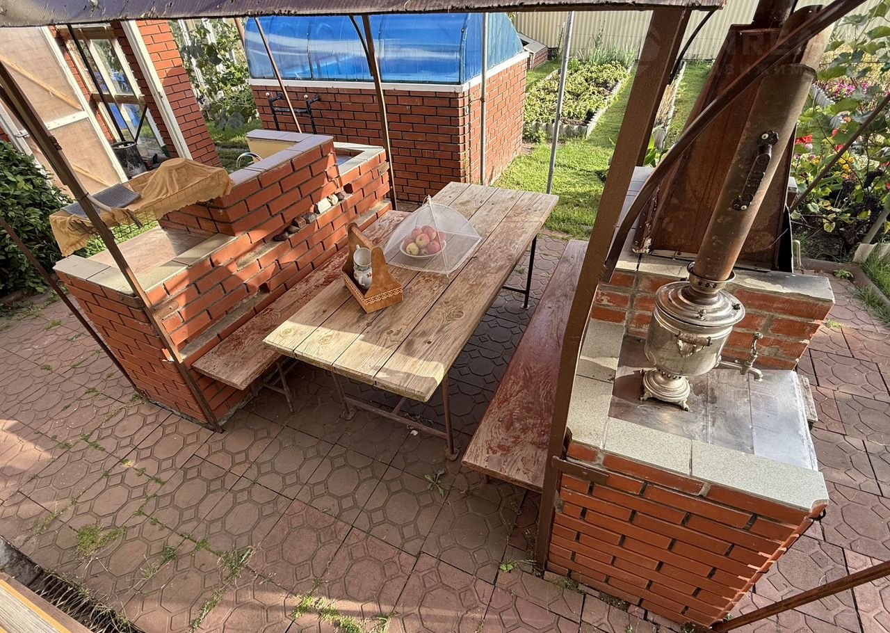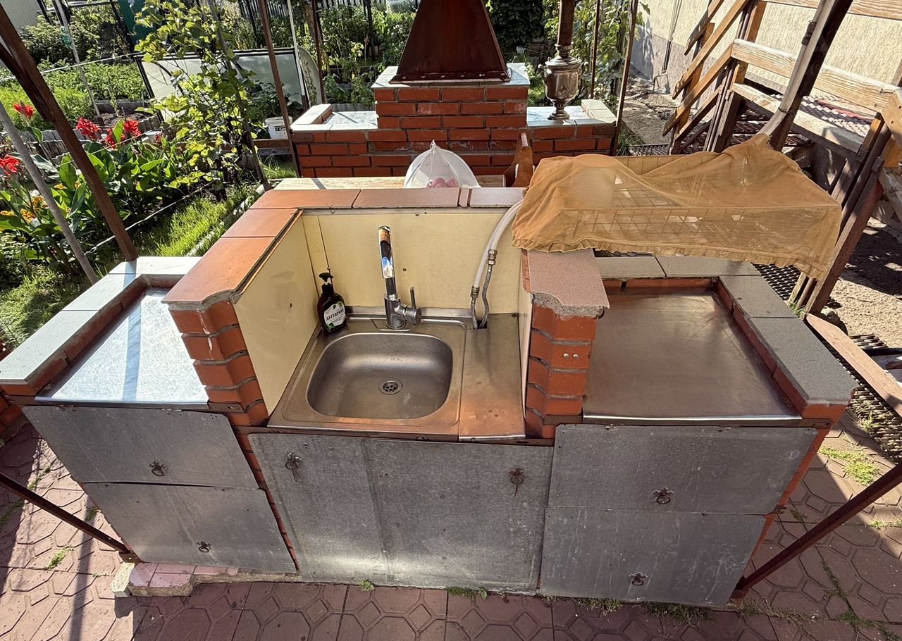 - На территории имеется бассейн-купель 2*1,5, летняя беседка со столом и скамейками, с одной стороны которой мангал с дымоходом, с другой стороны мойкой с горячей водой, наружный туалет из красного кирпича, подведены водопровод и свет