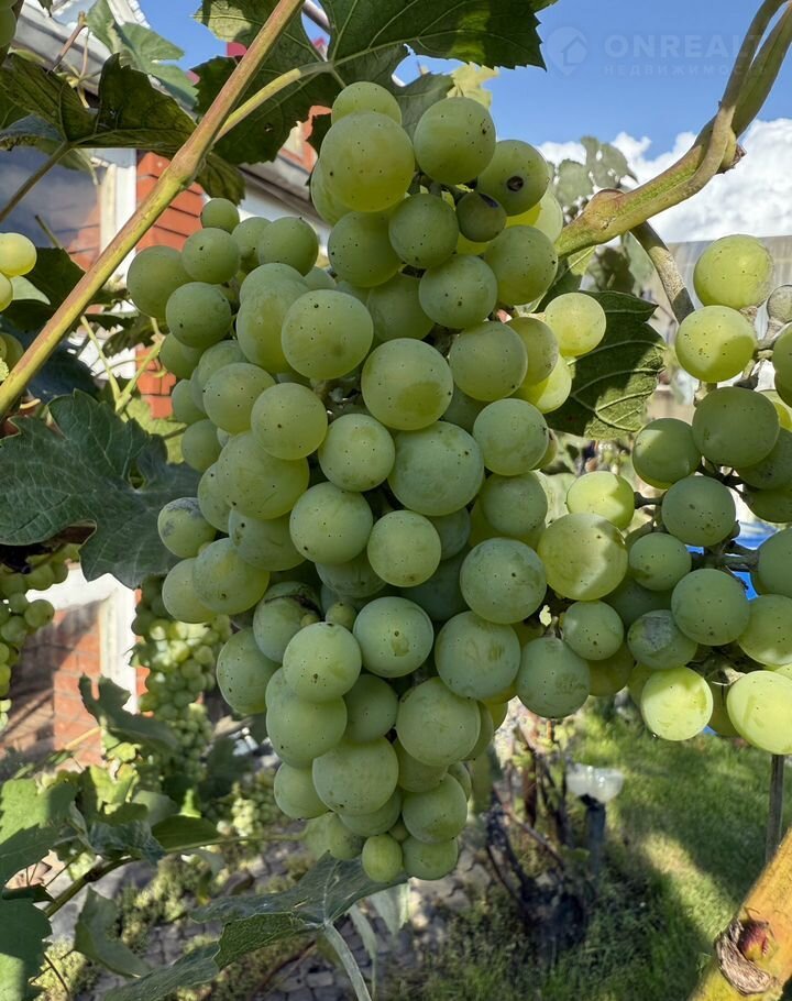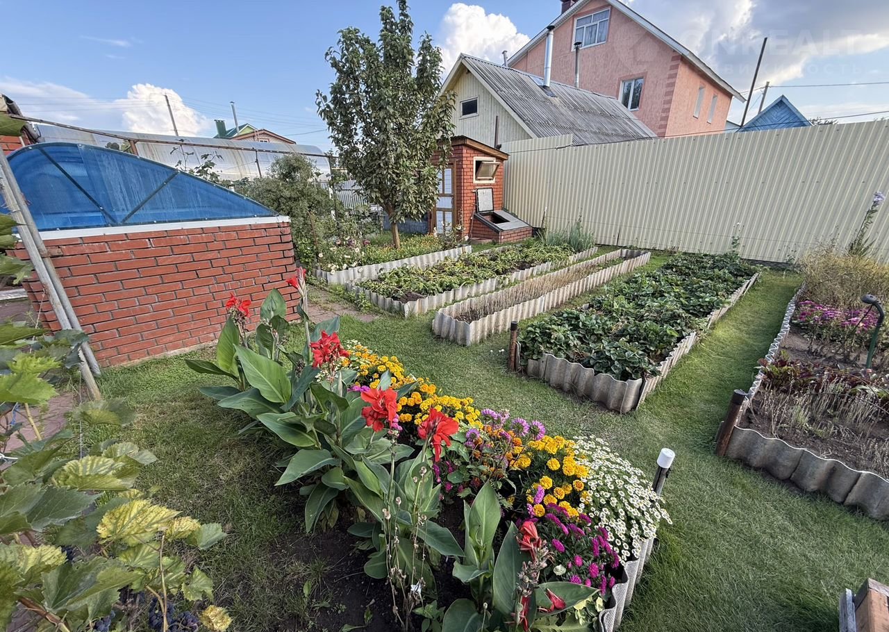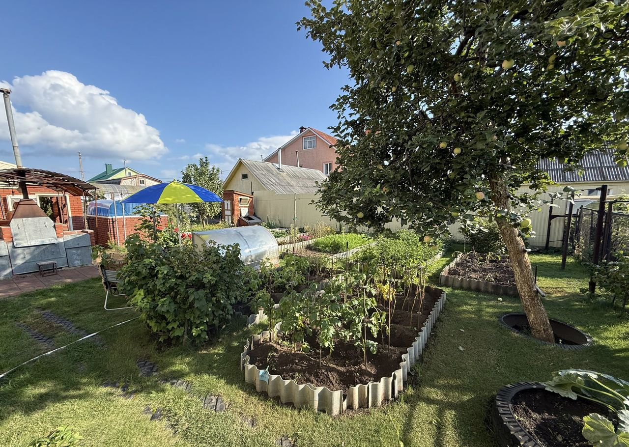 - Ухоженный сад с южной стороны участка с плодородным гумусом. Плодоносящие и декоративные деревья и кустарники (крупная черная смородина (5 сортов), яблони (башкирская красавица (осенний сорт) и колоновидная), 8 сортов плодоносящего винограда, ягоды. Огородные грядки для зелени и других культур, между которыми высажен газон для чистоты