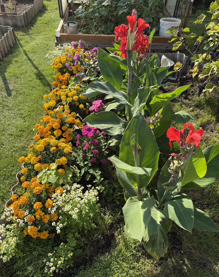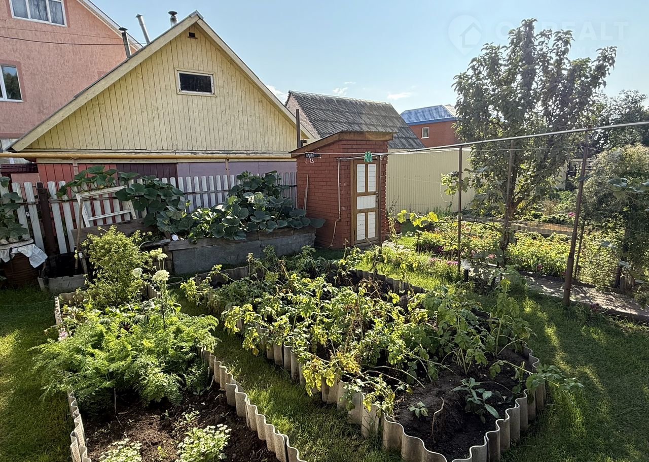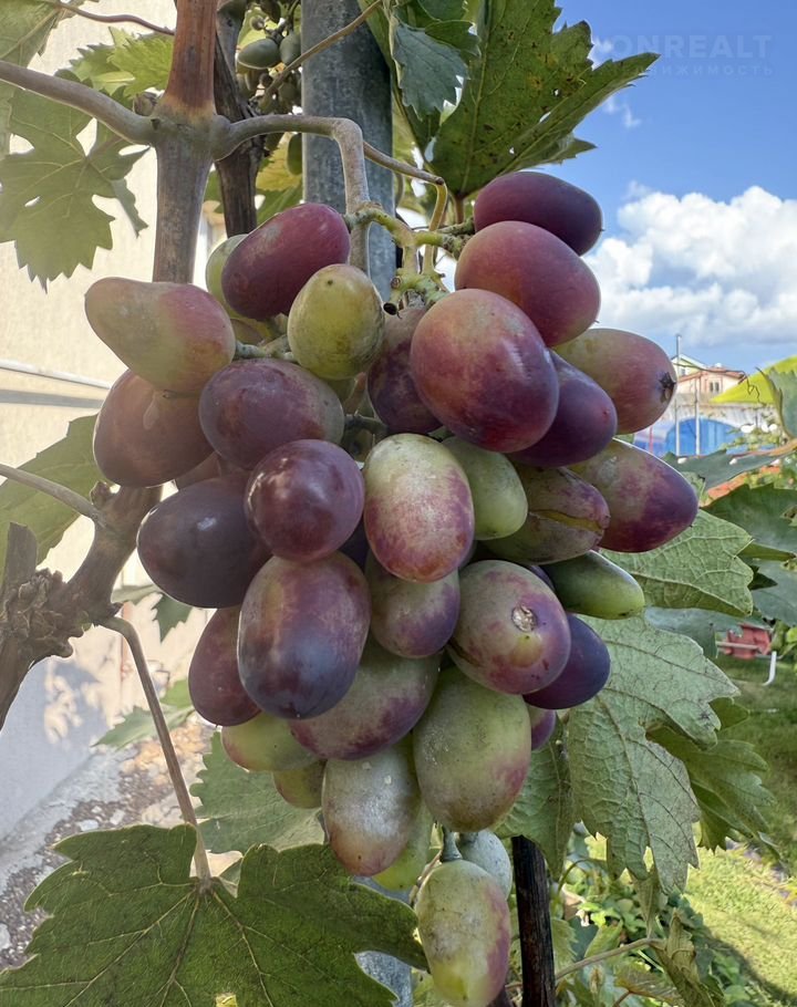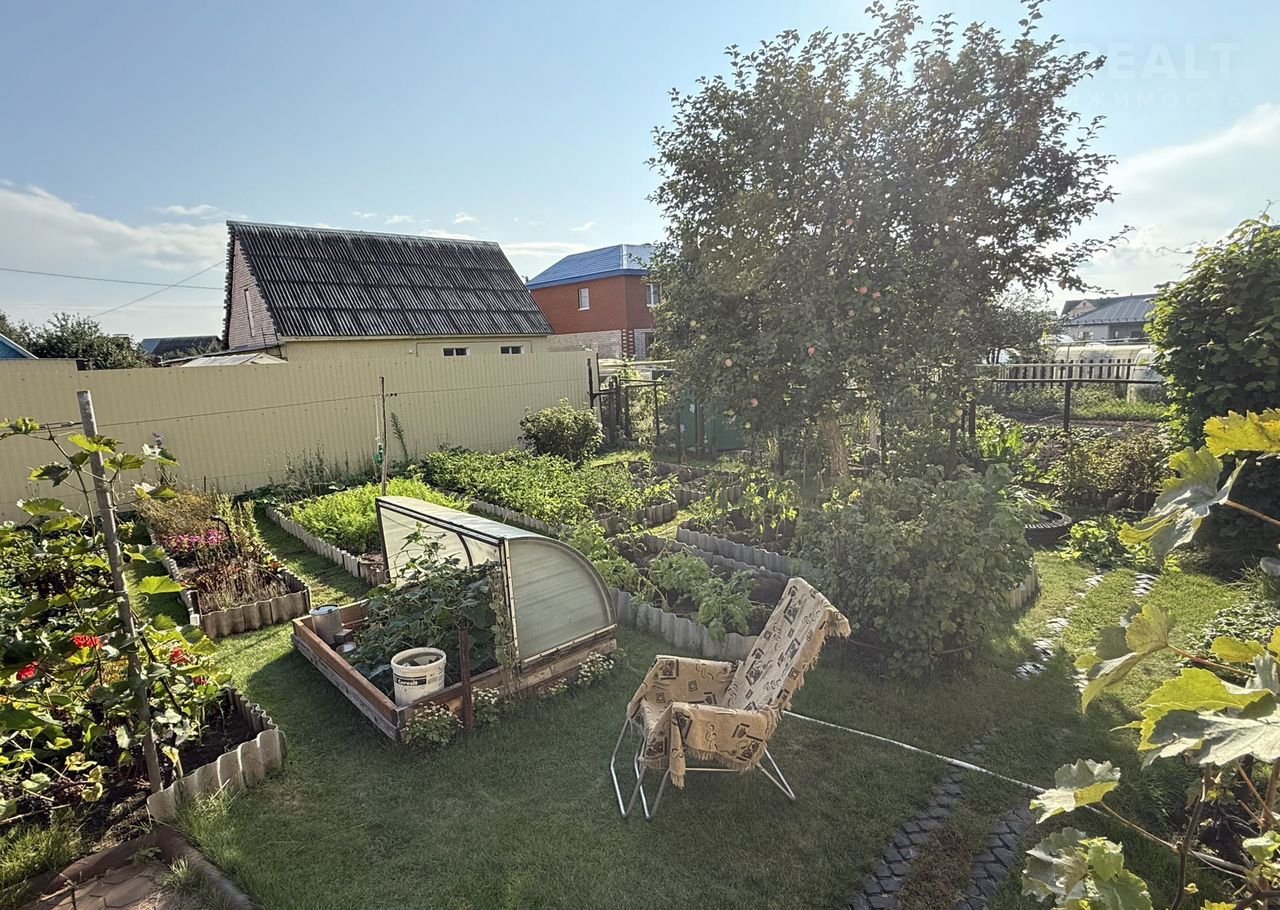 - Ухоженный сад с южной стороны участка с плодородным гумусом. Плодоносящие и декоративные деревья и кустарники (крупная черная смородина (5 сортов), яблони (башкирская красавица (осенний сорт) и колоновидная), 8 сортов плодоносящего винограда, ягоды. Огородные грядки для зелени и других культур, между которыми высажен газон для чистоты