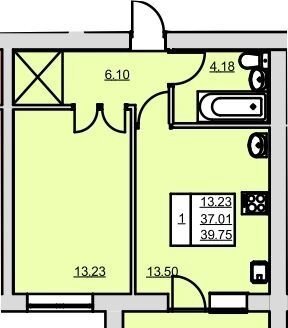 Общая площадь 39.8 м2