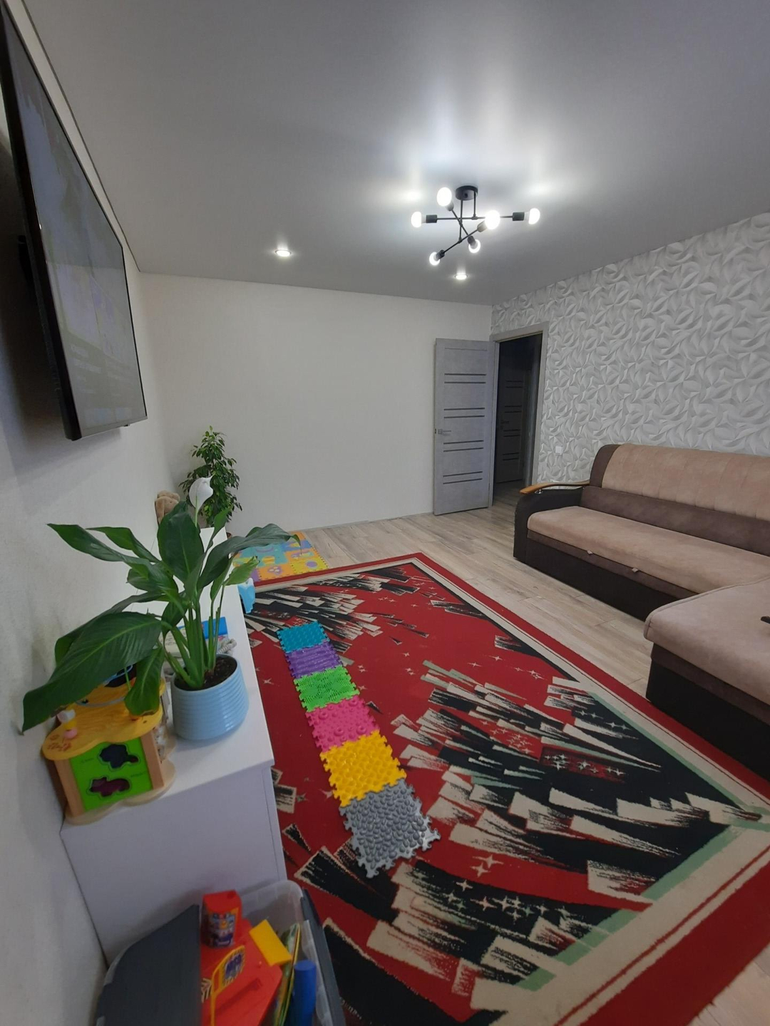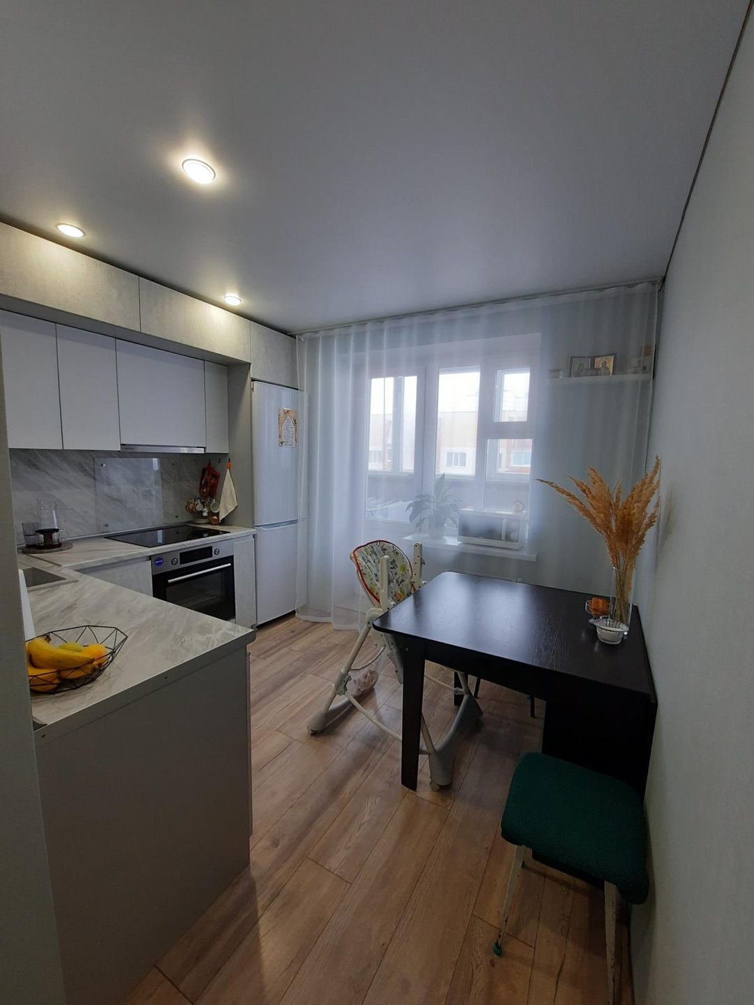 Квартира с готовым ремонтом. Новым хозяева остаётся встроенный шкаф, кухонный гарнитур со встроенной техникой.