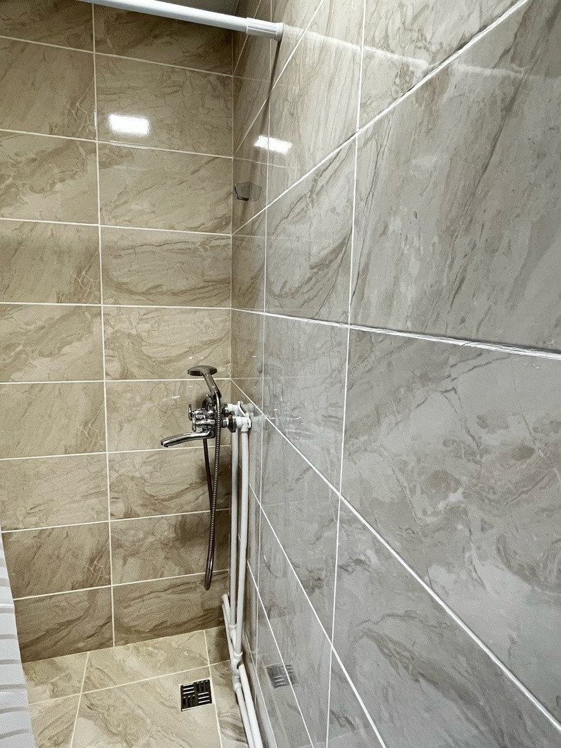 Туалет и душ в комнате, кафель премиум класса Kerama Marazzi;