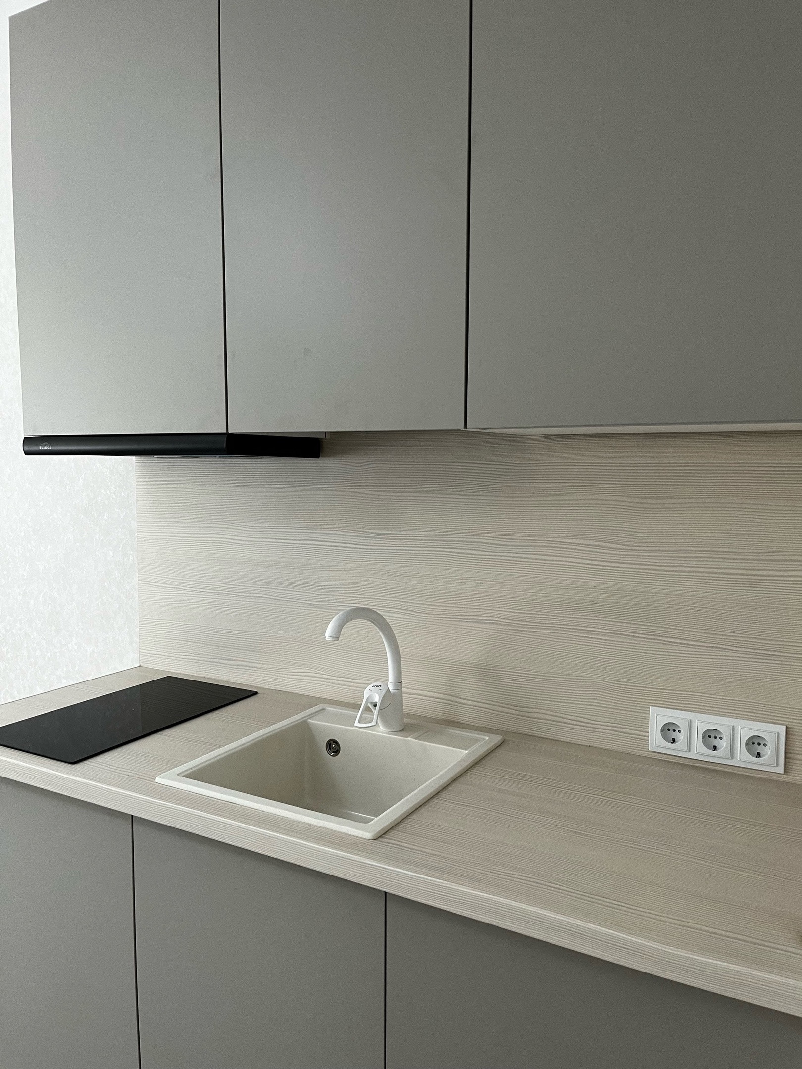Мебель и кухонный гарнитур изготовлена под заказ, все в одной цветовой гамме;