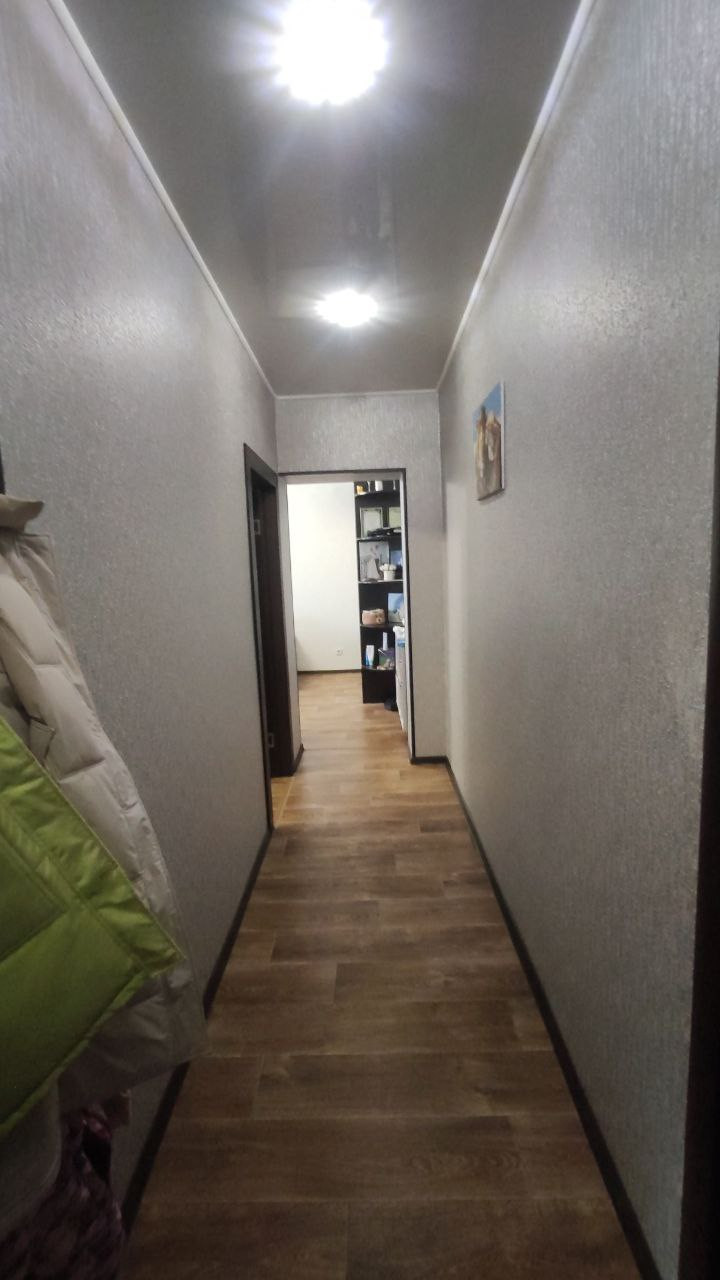 При входе в квартиру имеется закрытый тамбур на две квартиры, что очень удобно - не заносишь грязь с улицы домой. Пластиковые окна, натяжные потолки, на полу ламинат, санузел в кафеле.