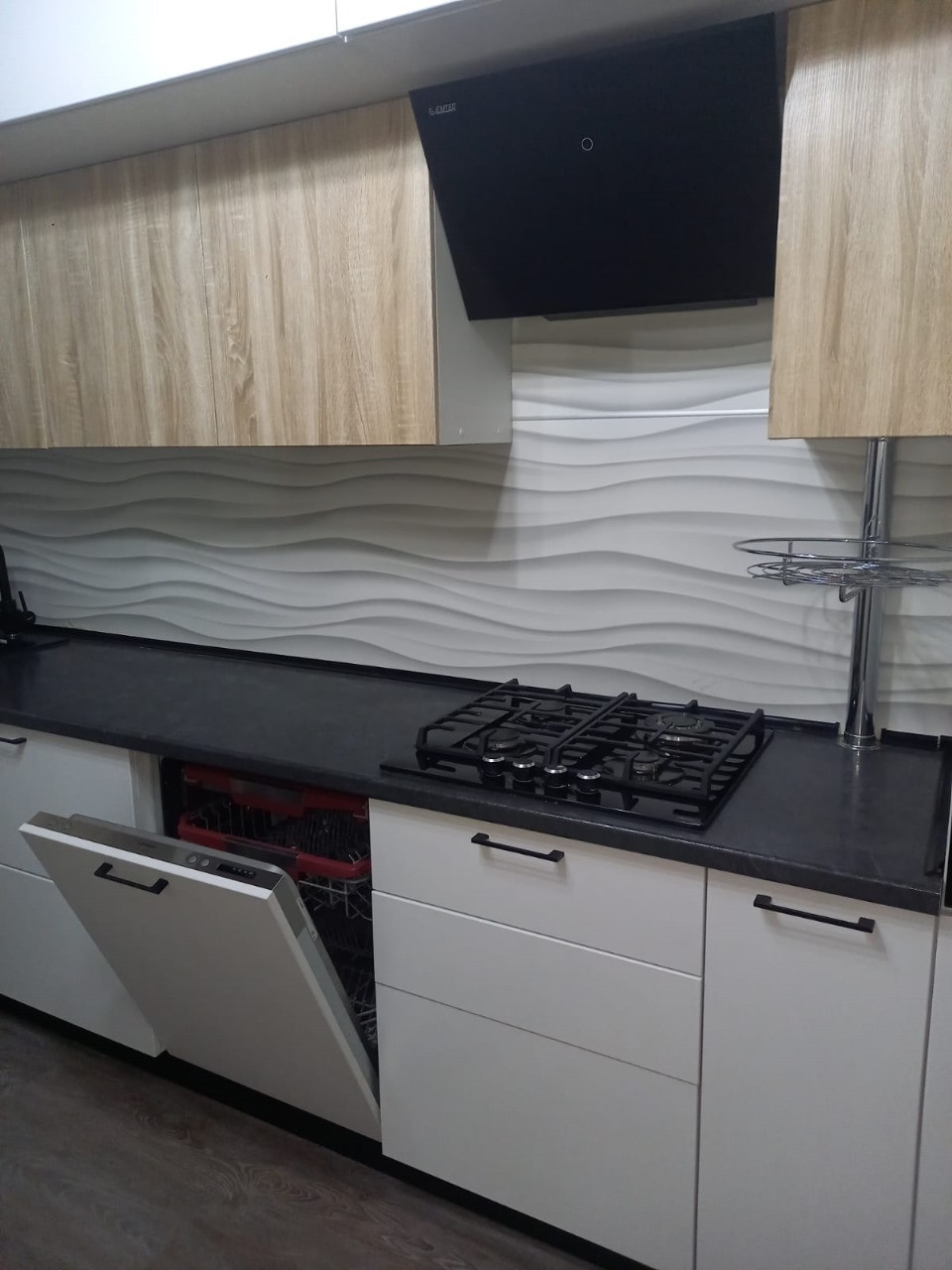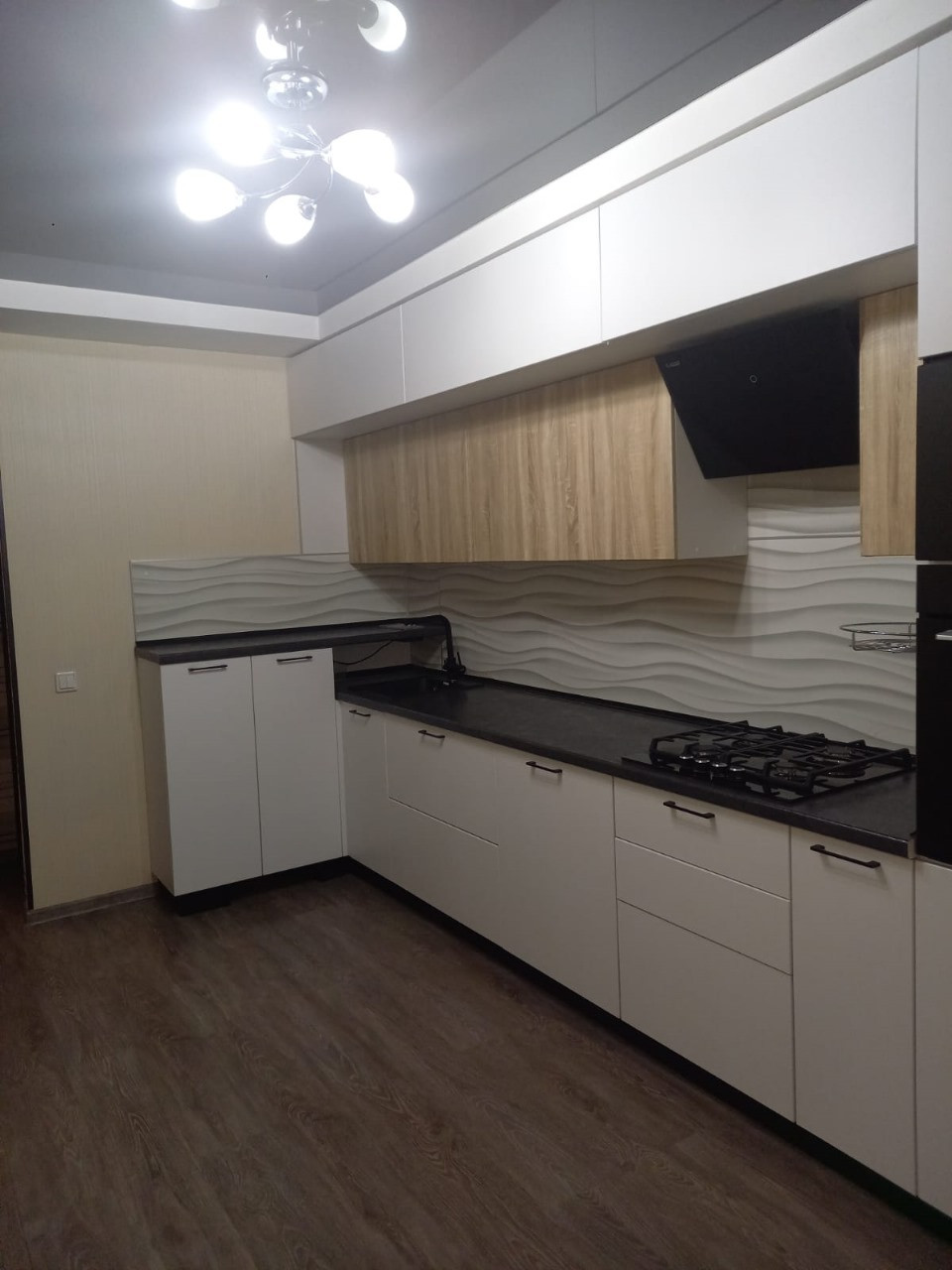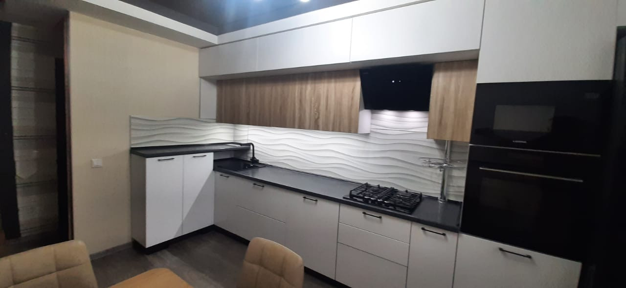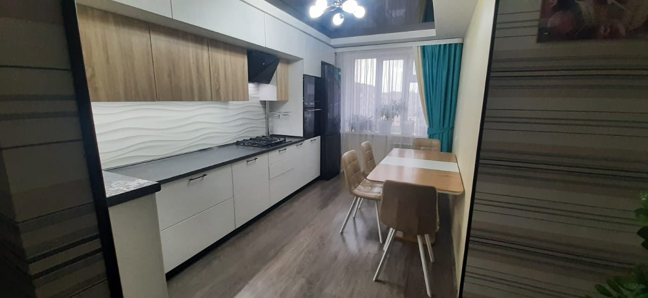 В подарок новым собственникам остается шикарный кухонный гарнитур со встроенной варочной панелью и посудомоечной машиной, два вместительных шкафа-купе.