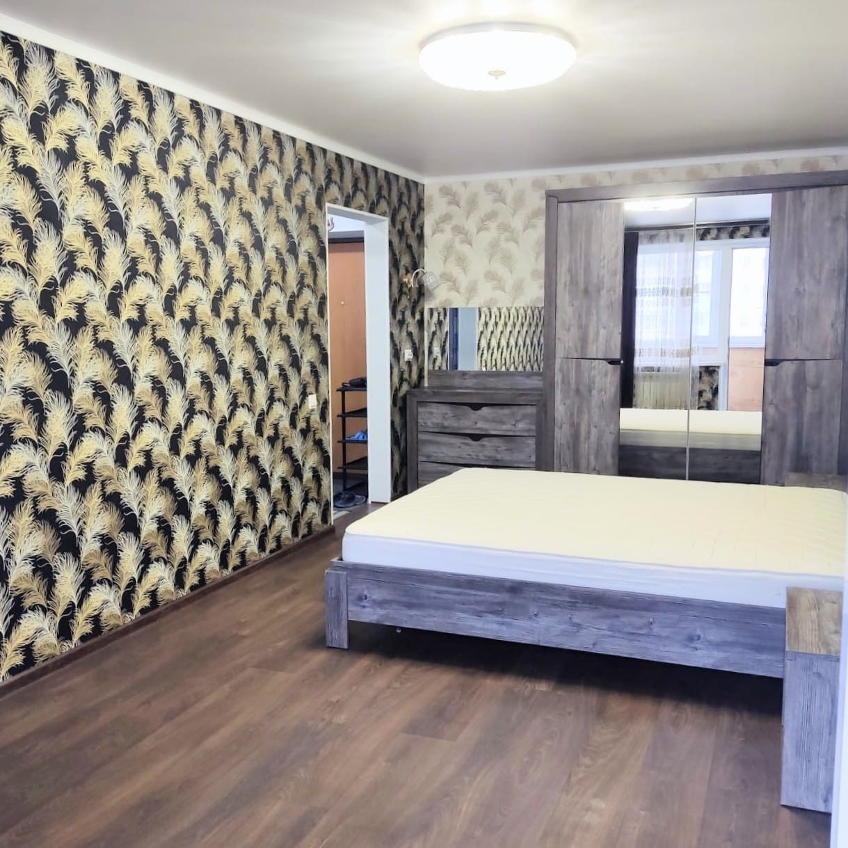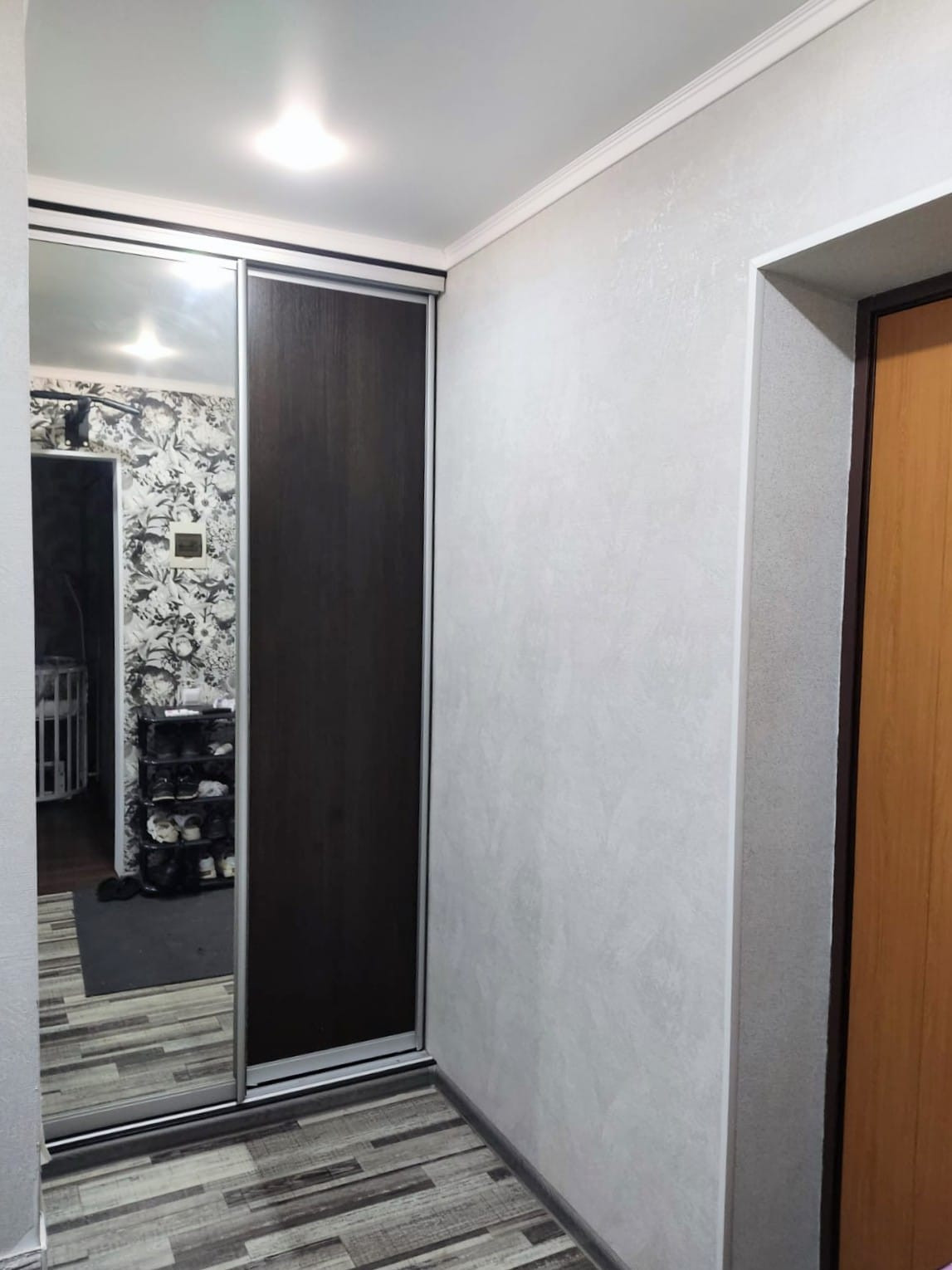 На полу отличный линолеум и ламинат, полы ровные