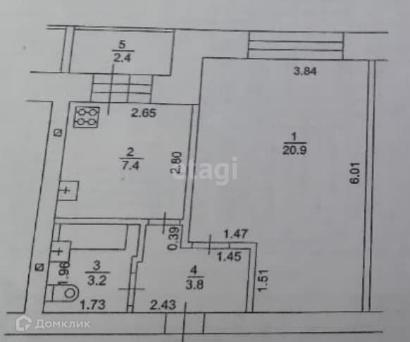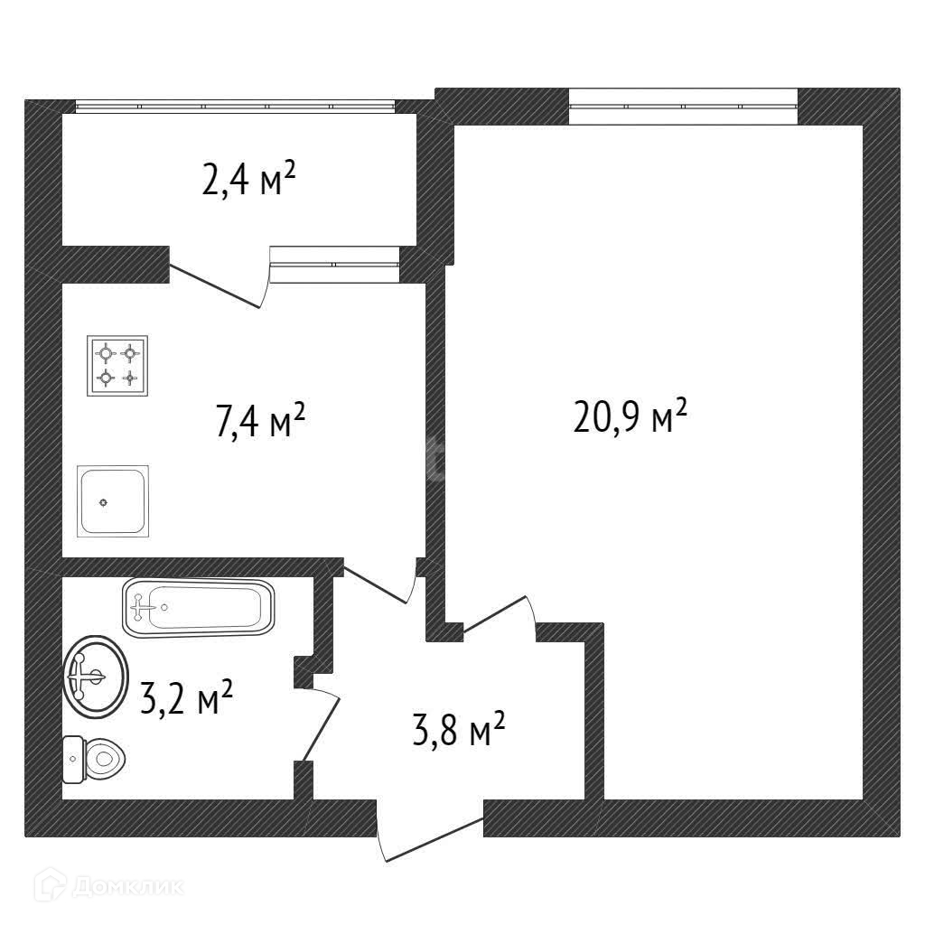 Общая площадь 35.3 м2