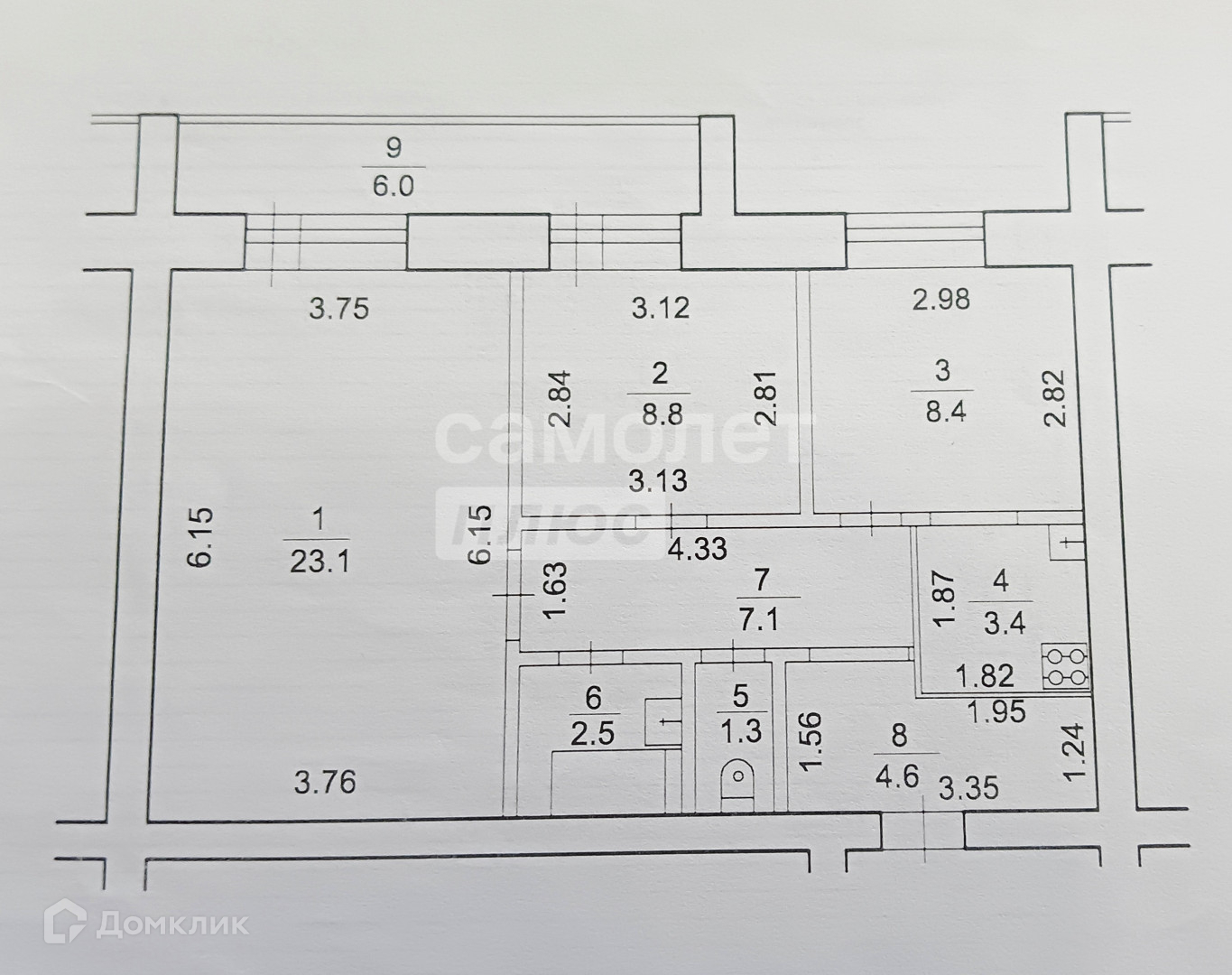 Высота потолков 2.6 м