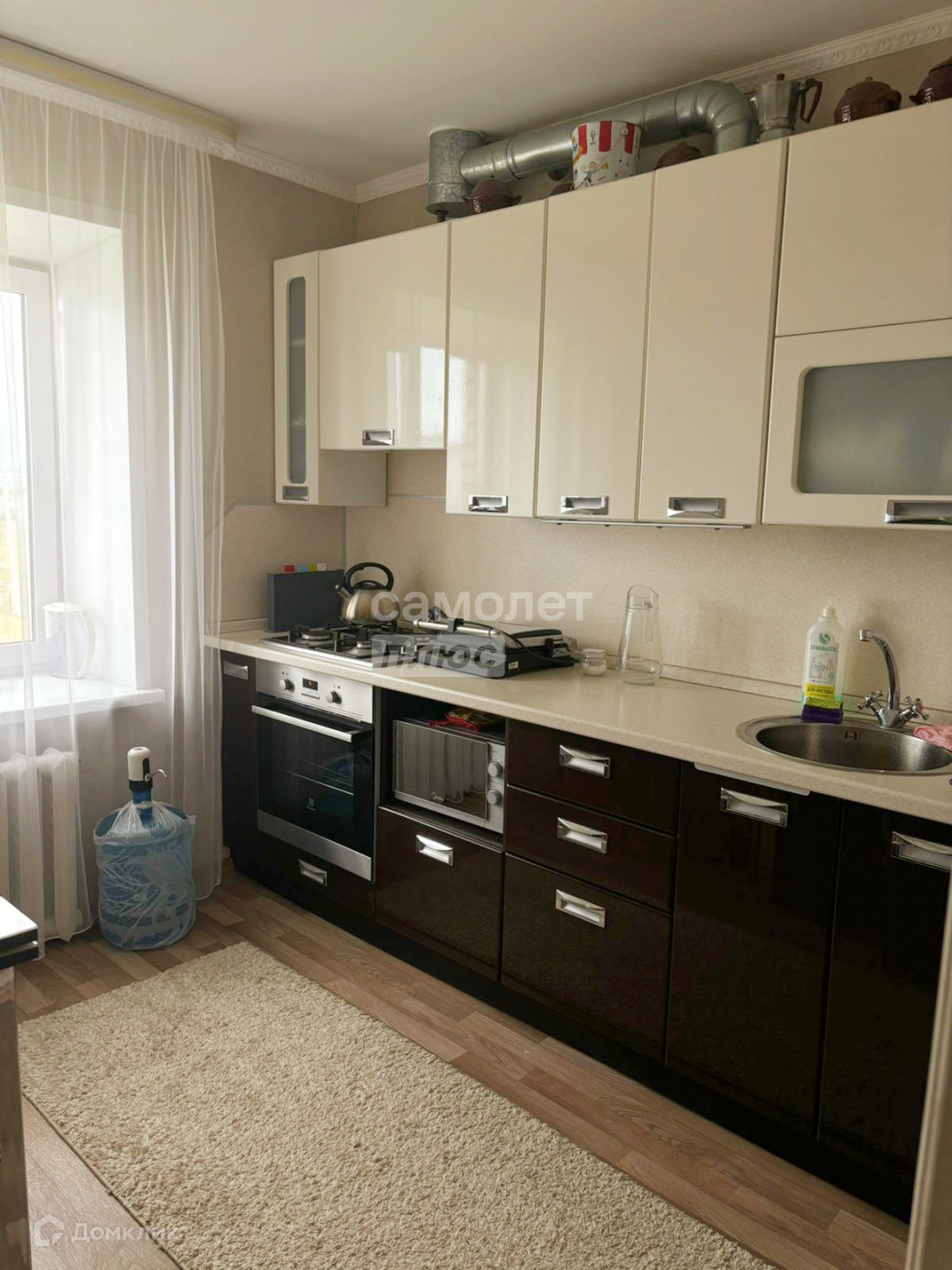 Из мебели и техники остается практически всё: кухонный гарнитур, варочная панель, духовой шкаф, холодильник, стиральная машина, диван, тумба под тв, настенные полки, комод в детской, ковры