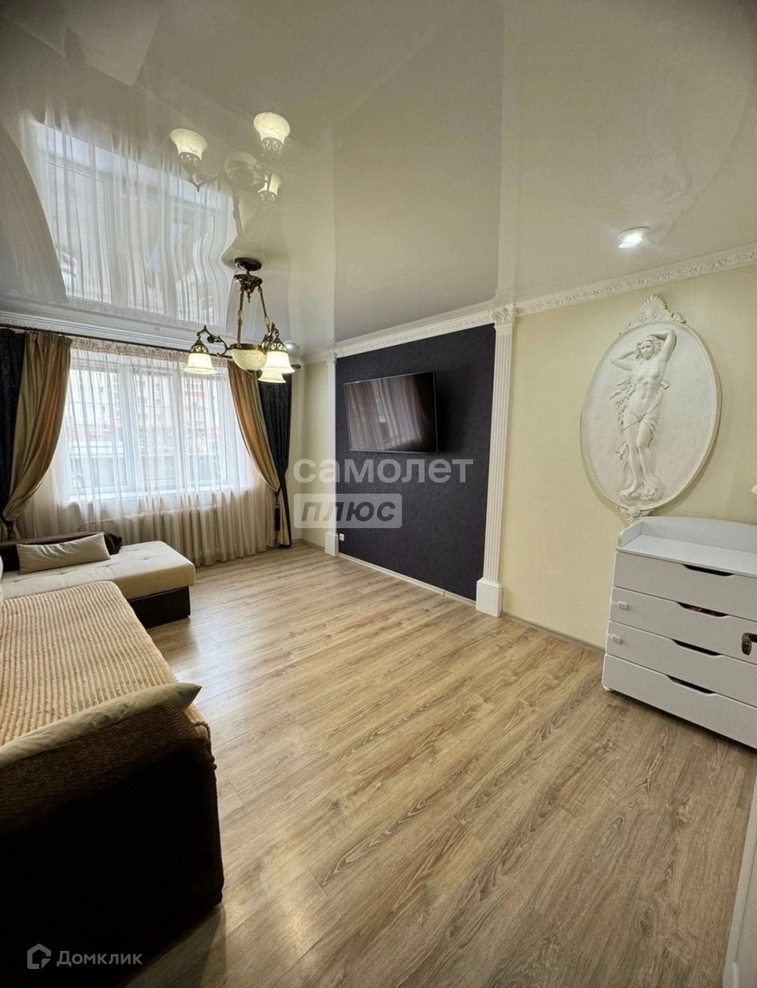 В квартире сделан евроремонт, натяжные потолки, пластиковые окна, на полу ламинат, теплые полы. Просторная кухня. Санузел раздельный в кафельной плитке. Дом расположен во дворе, вдали от пыли и шума. Окна выходят во двор и на другую сторону, что очень удобно для семей с детьми.