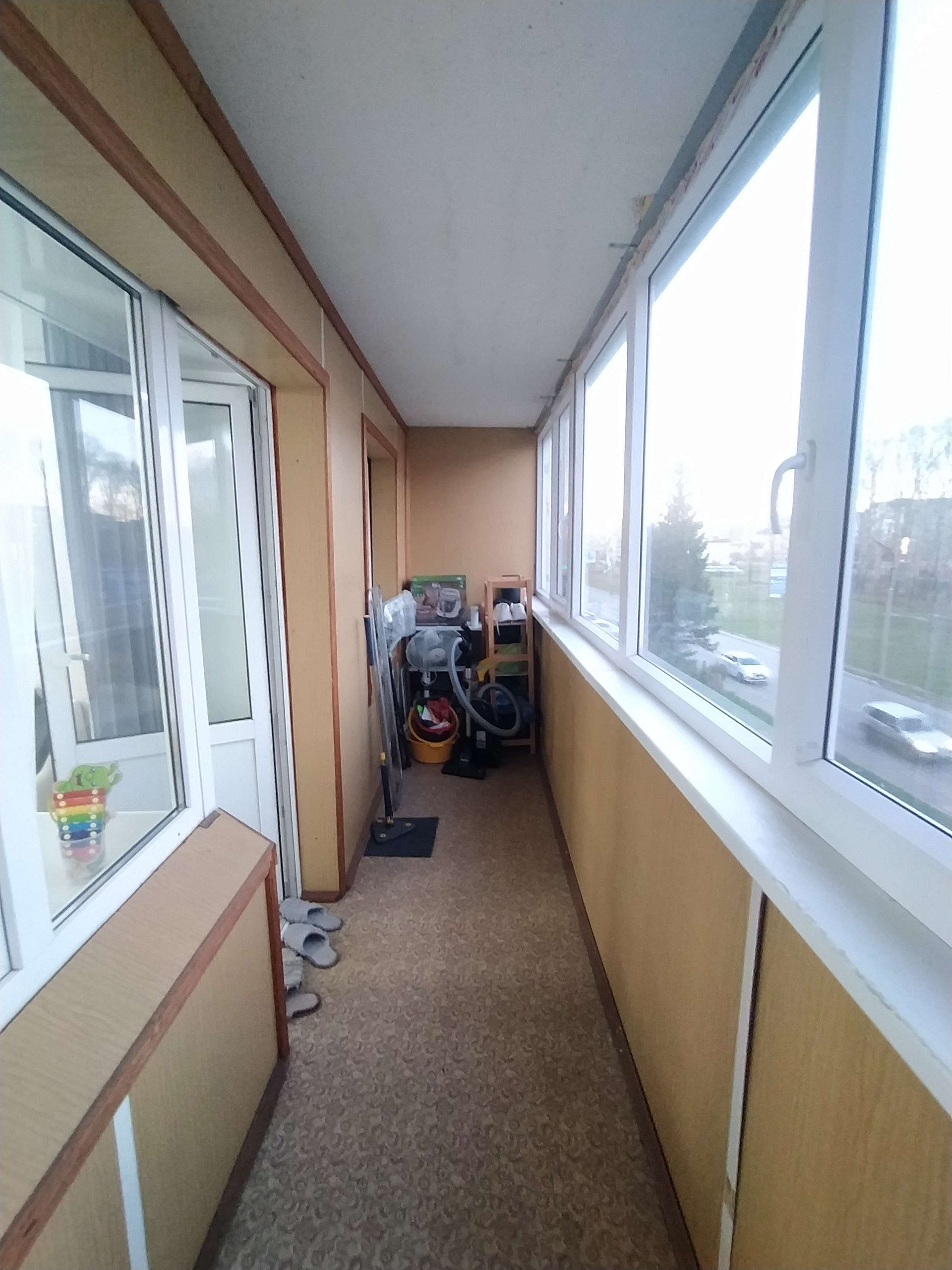 Плюс большая лоджия - 6 метров, застеклена пластиком.