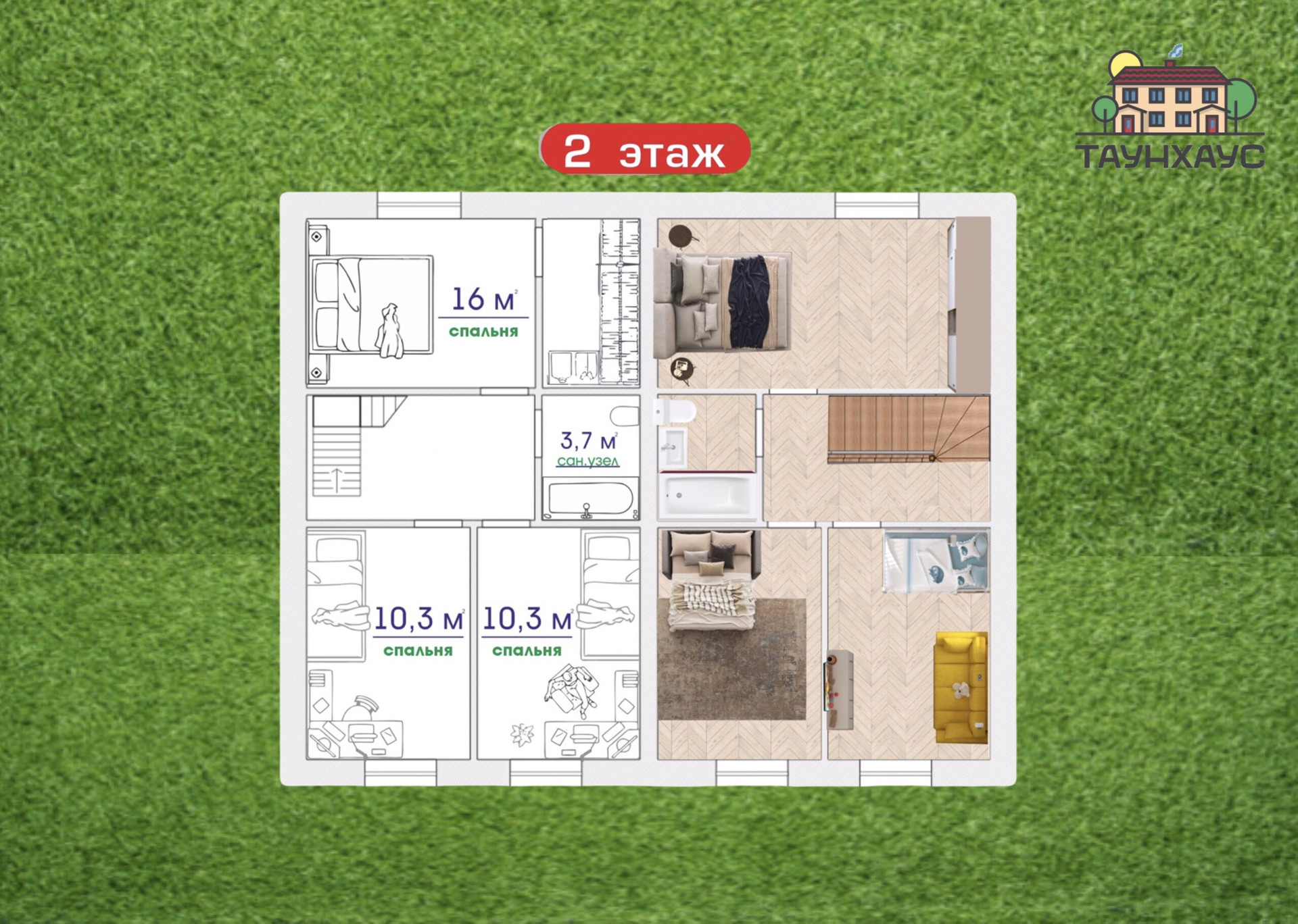 2-этажный таунхаус, 104 м2, на продажу в Нефтекамске, Трактовая улица, 64Е