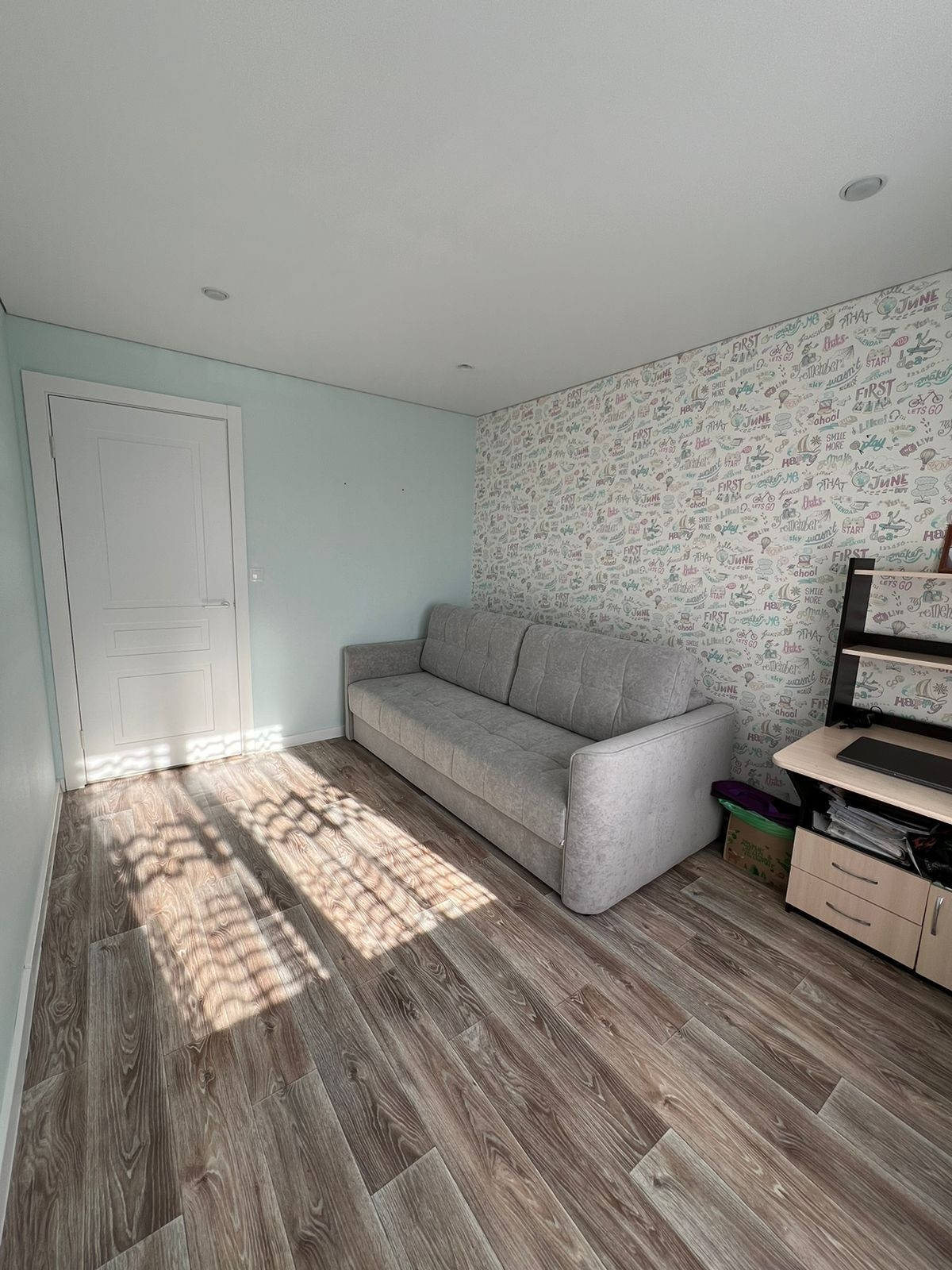 По вceму пeрвому этажу теплый пол, постелен по всему периметру качественный ламинат.