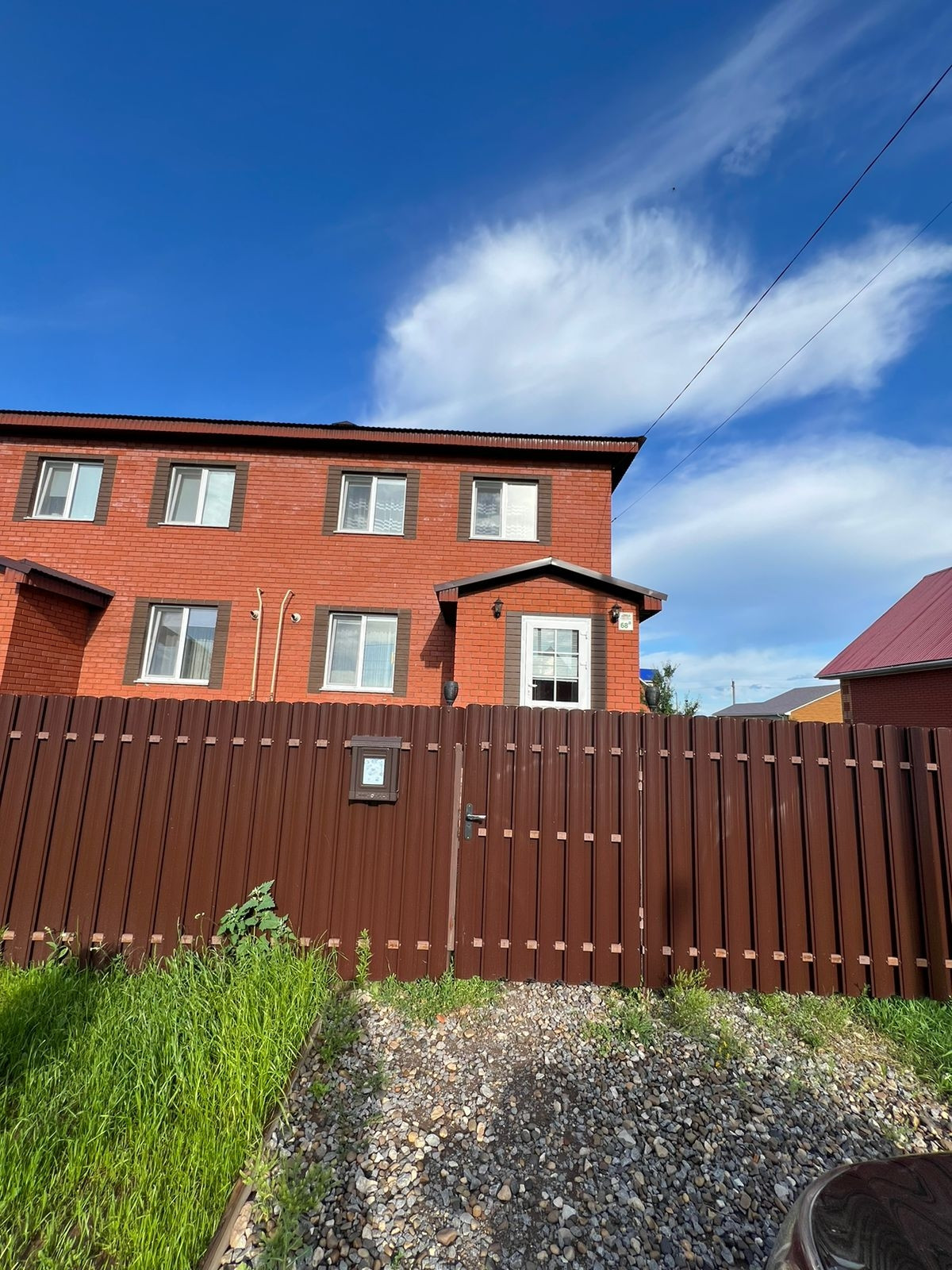 Два парковочных места перед домом, дружные и спокойные соседи.