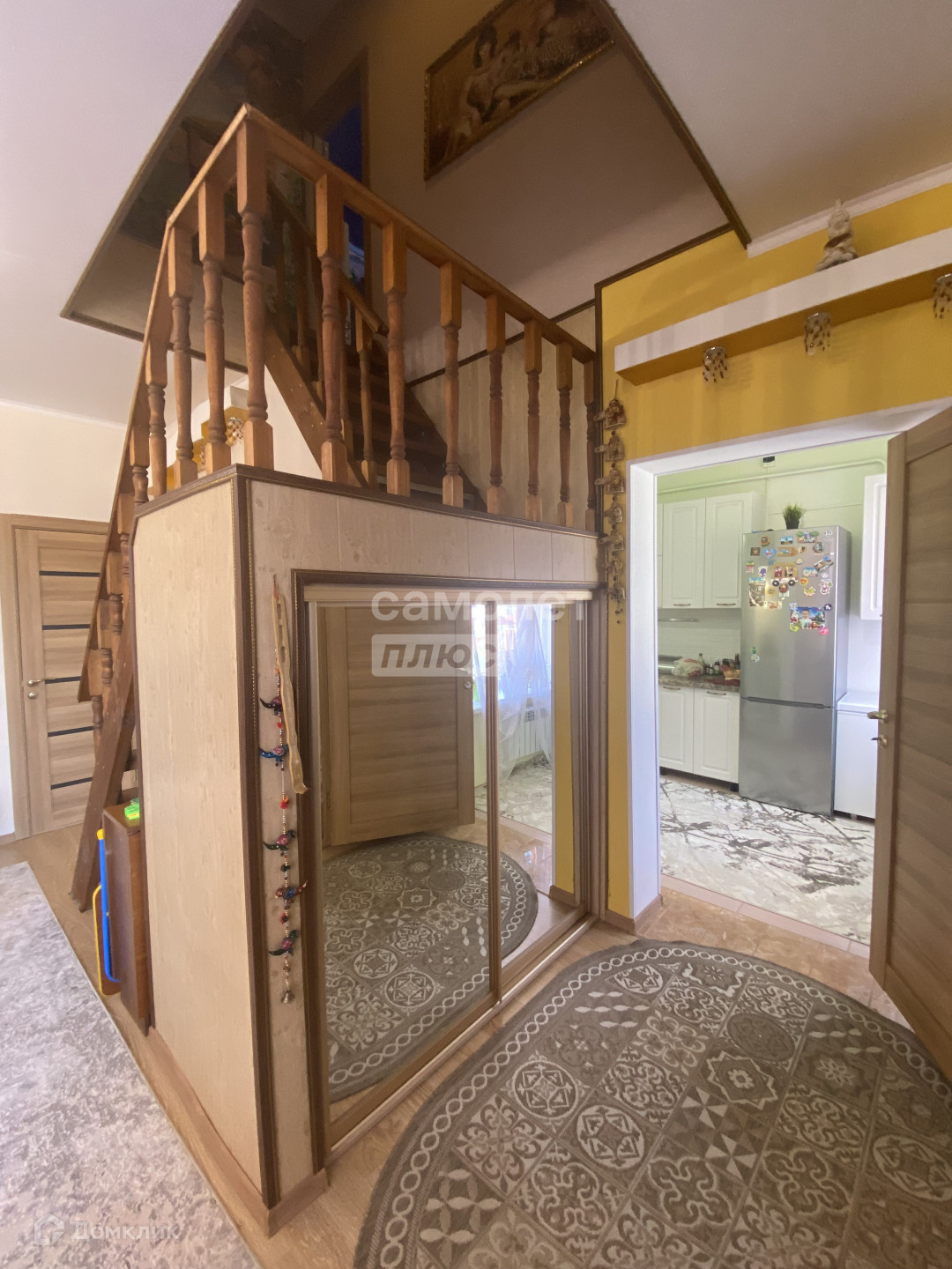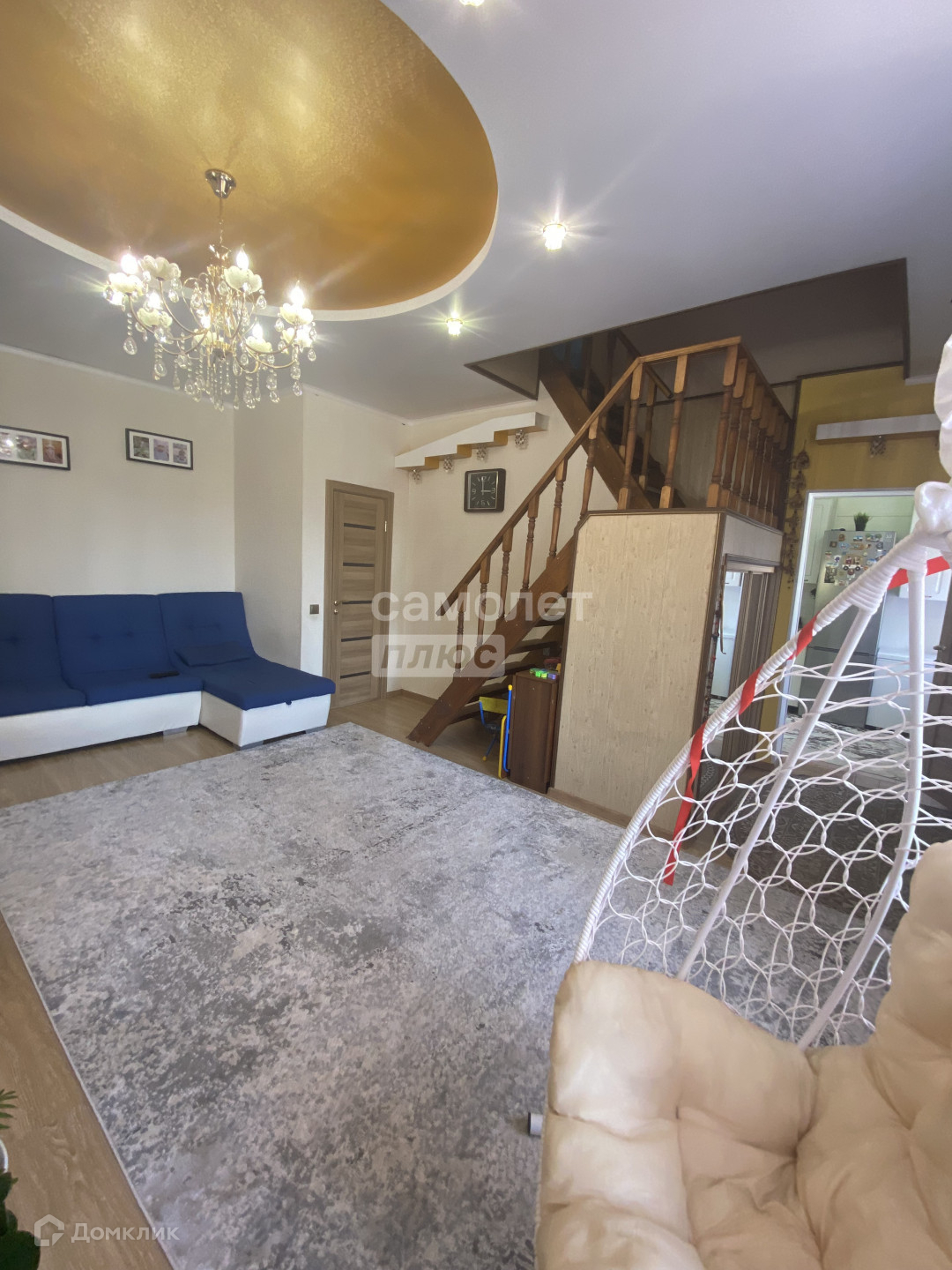 На первом этаже комната-гостиная, просторная кухня, санузел. На втором этаже две комнаты, два балкона, свой санузел. Частично остается мебель.
